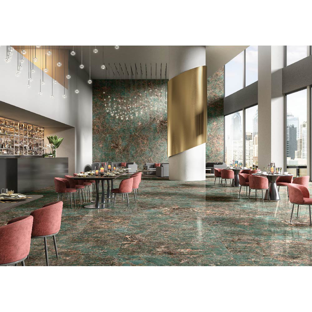With its unique mineral-inspired patterns and harmonious color palette, Amazonite transforms interiors into sophisticated, striking spaces. Available in large-format slabs, it combines luxurious design with the durability and functionality of premium ceramic surfaces.