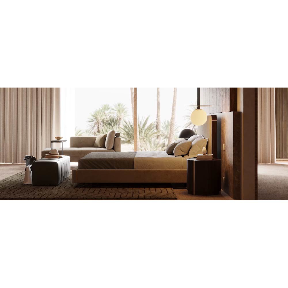 The Andy suspension lamp boasts distinctive curves that create an impressive lighting piece for romantic living rooms. The lamp features a metal structure and a simplistic design, with a round screen that enhances the beauty of any decor and design concept.