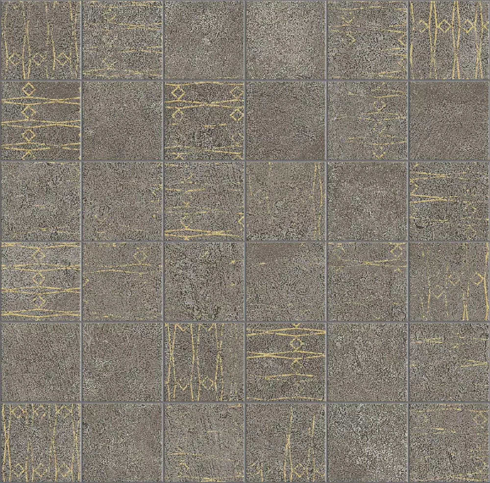 Aria is perfect for minimalist living spaces in dark colours and stained natural materials, where it adds to their beauty. Fascinating end results can be achieved by combining the field tiles that feature an eroded surface with the decors whose copper or metal-coloured patterns have a timeless appeal in keeping with lux surface decorative trends.