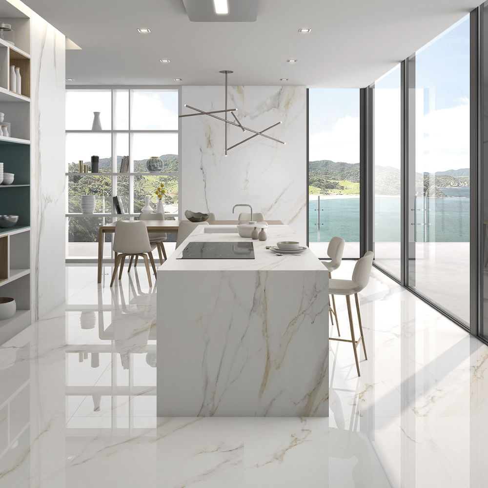 Marblessa Countertops collection is a new sintered mass that provides solutions for kitchen countertop with character and personality. Born as a result of a deep study of decorative trends and the most contemporary demands. Its large dimensions 63"x126", and the extremely high-performance technical features make it an ideal material for the most demanding product applications such as kitchen countertops.