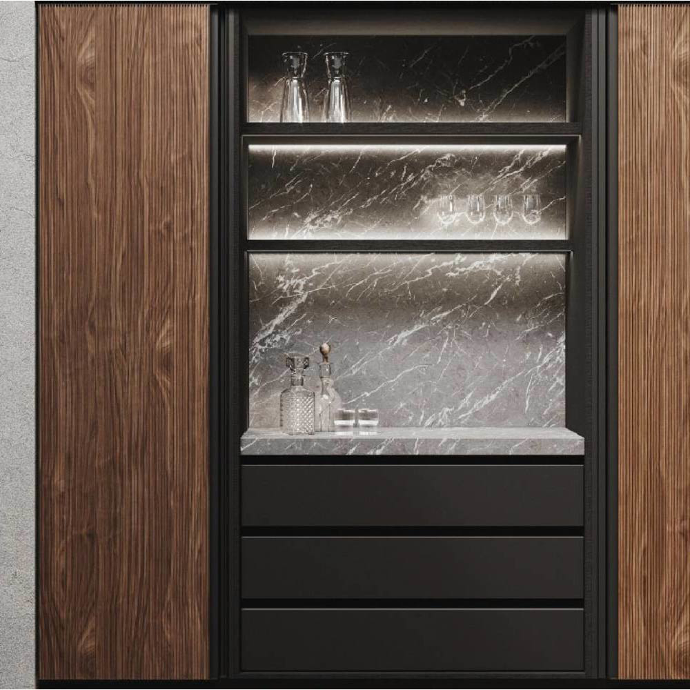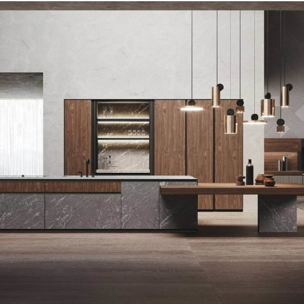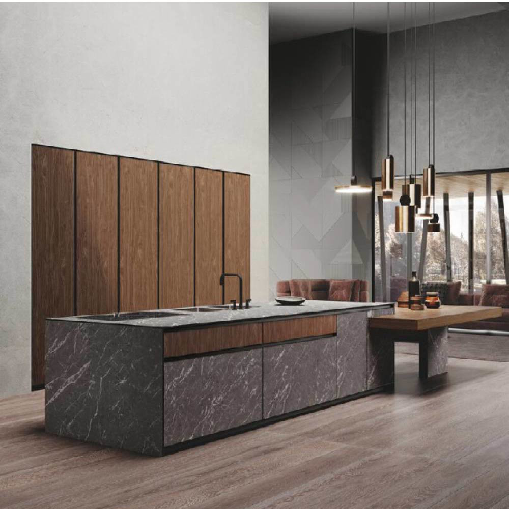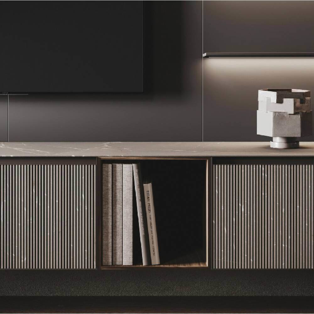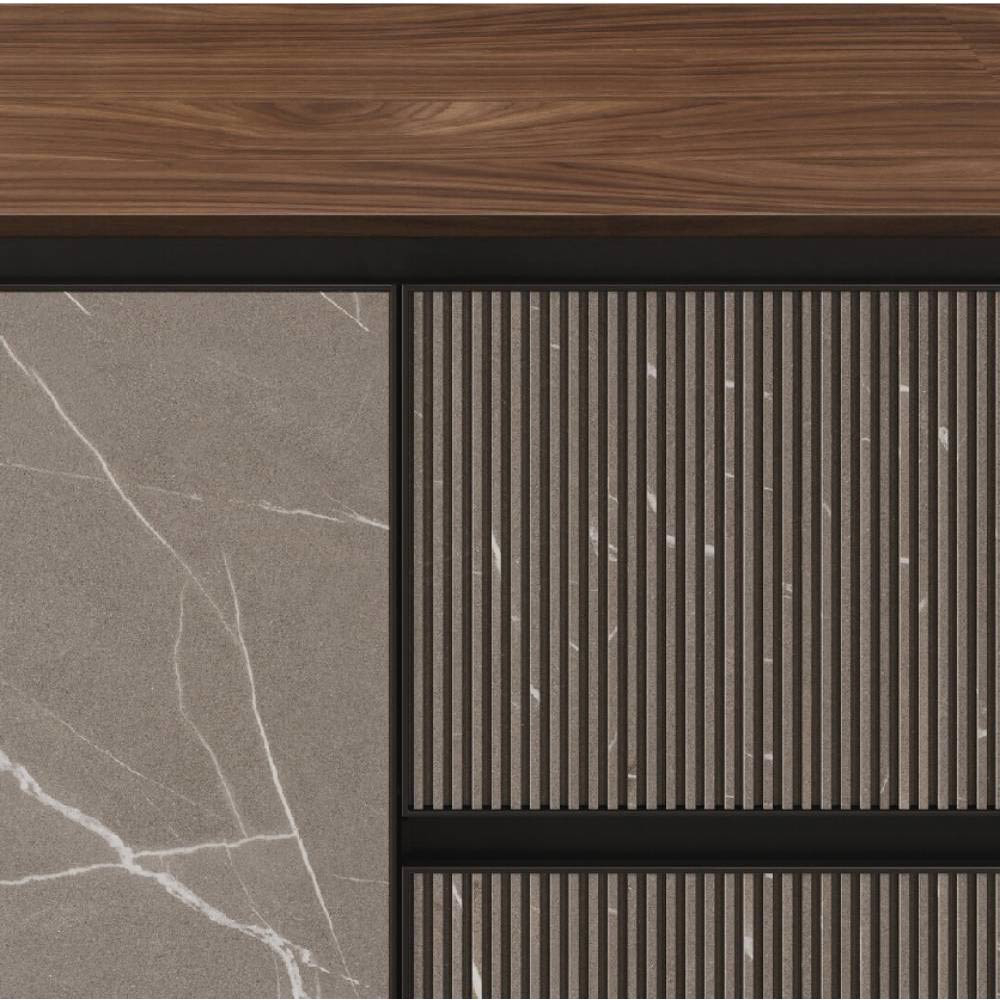 Allowing freedom is the sign of a great strength. We let materials get over their own attitude. It implies the ability to become a real tool of nature to enhance the range of possibilities of elements like the native mildness of wood or the suggestions coming from outer space. A whole universe comes at hand, tangible and in a multipurpose capacity, allowing us to experience the deepness of space and substance. This is an expression of real liberty: the minimalist design is free to run with its vivid essence along contours and grain, sharp lines that become a common sign, living in the light and shade, balancing the global aesthetics and the slightest particulars. A model that is expansion: thanks to the aluminum frame, which comfortably allow space for the central panel and at the same time allows opening grip on the top edge.