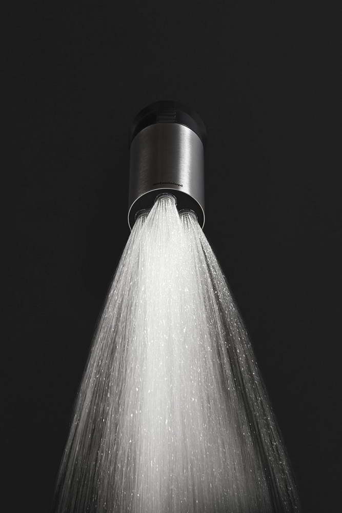 Azimut can be applied to the wall or ceiling depending on the needs and is able to orient the jet of water according to the physical characteristics of the user to ensure maximum relaxation. A project that redefines the archetype of the showerhead, an object that improves the quality of the showering space, a detail that rewrites a consolidated gesture. The movement has been made with a device that generates a pleasant snap effect and at the same time keeps the head firm in the desired position. As in all the collections of antoniolupi aesthetics plays a key role in defining the project. The sophisticated elegance of satin steel, measured proportional balance and compactness make it an object of the contemporary soul.