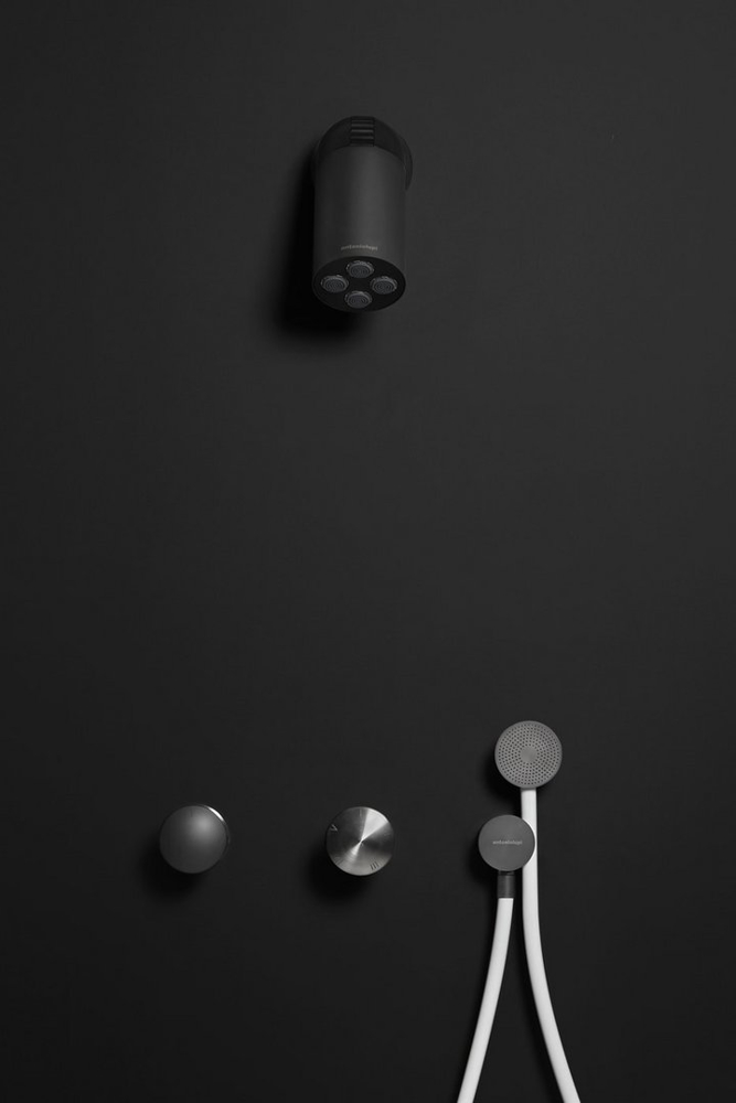A perfect cylinder, compact, essential, precise, an image that is the perfect synthesis of technology and design: Azimut is the ceiling and wall showerhead in stainless steel and matt black body with a special rotation which is the heart of the project. A technical detail that becomes aesthetic, a peculiarity that makes the difference, a concept that puts an evolved functionality first. The hinge allows the showerhead to rotate and then direct the jet more than 180°. A feature that multiplies the possibilities of use, providing greater flexibility in the installation.