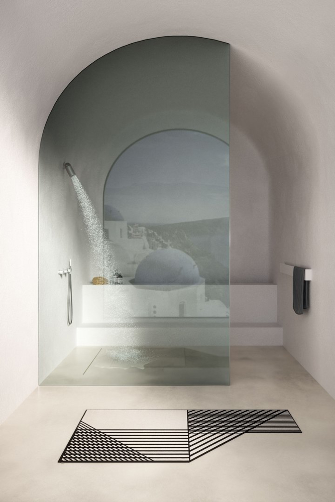 In addition to the matt black body, the cylinder can be customised in satin stainless steel, polished chrome, graphite, polished and satin brass or lacquered in the antoniolupi colour range.