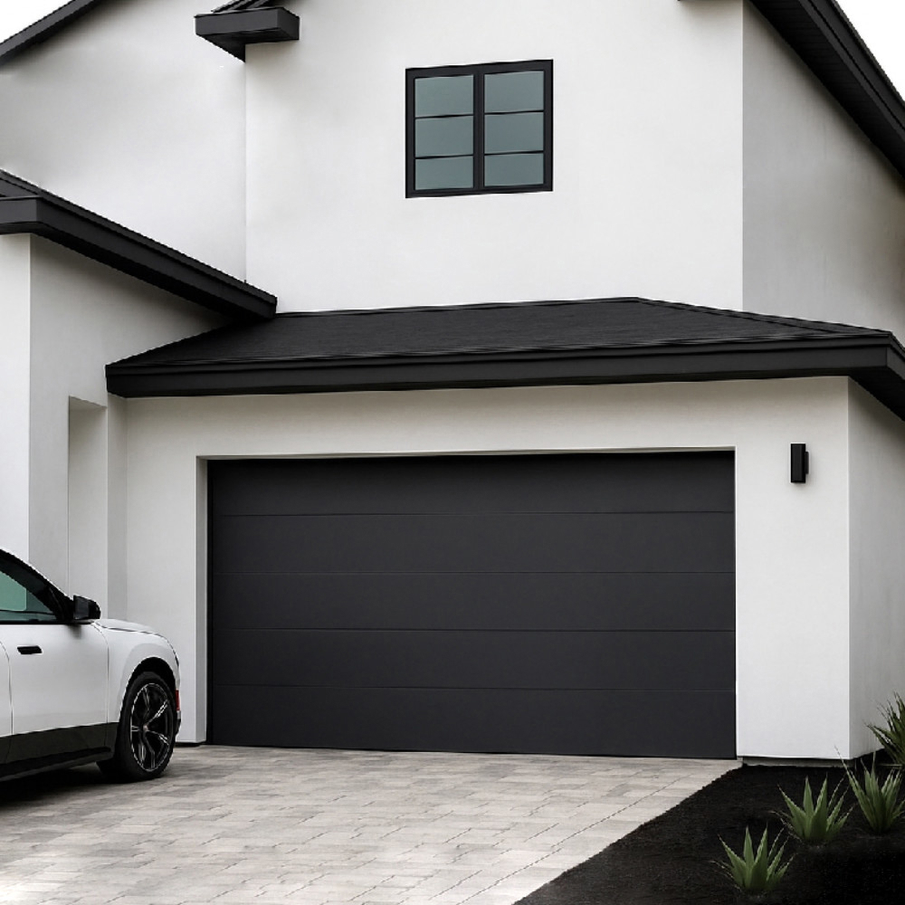 Finished in black, this smooth steel garage door offers a bold, high-end appearance while requiring minimal maintenance. Designed for residential use, it is an ideal solution for homeowners seeking energy efficiency, durability, and modern design.