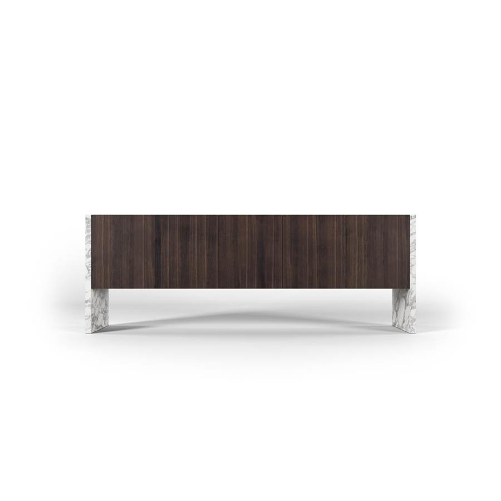 The central body is suspended and supported in a game of contrasting volumes by two shoulders which give the product great lightness.