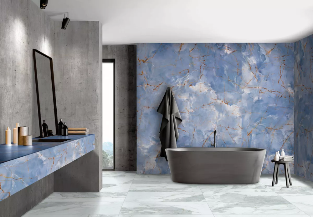 This Apavisa porcelain stoneware collection updates the beauty of Calacatta Gold marble. It is one of the most appreciated natural stones in the world of architecture and interior design for its hypnotic golden veins on a background of white and gray tones.