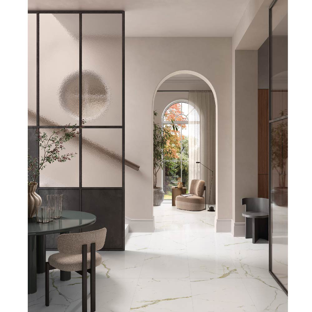 With its pure white background enhanced by refined gray veining, White Calacatta offers timeless sophistication and luminous beauty. Available in large-format slabs, it combines the elegance of natural stone with the durability, functionality, and precision of high-performance ceramic surfaces.