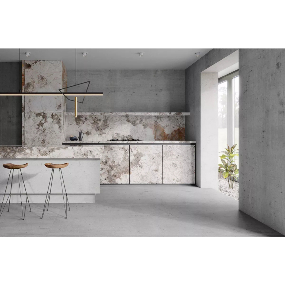 This large-format porcelain tile collection introduces a groundbreaking 48”x118” format, alongside other versatile sizes, and is available in 1/4” ultra-lightweight thickness, making it suitable for walls, floors, furniture, kitchens, façades, and ceilings. Its through-body porcelain composition ensures durability, while the non-slip grip and high-performance properties make it safe for indoor and outdoor applications, including bathrooms, swimming pools, and adjacent areas.