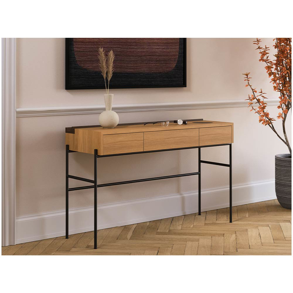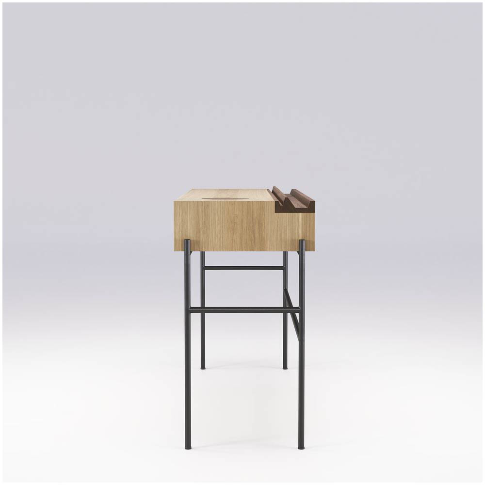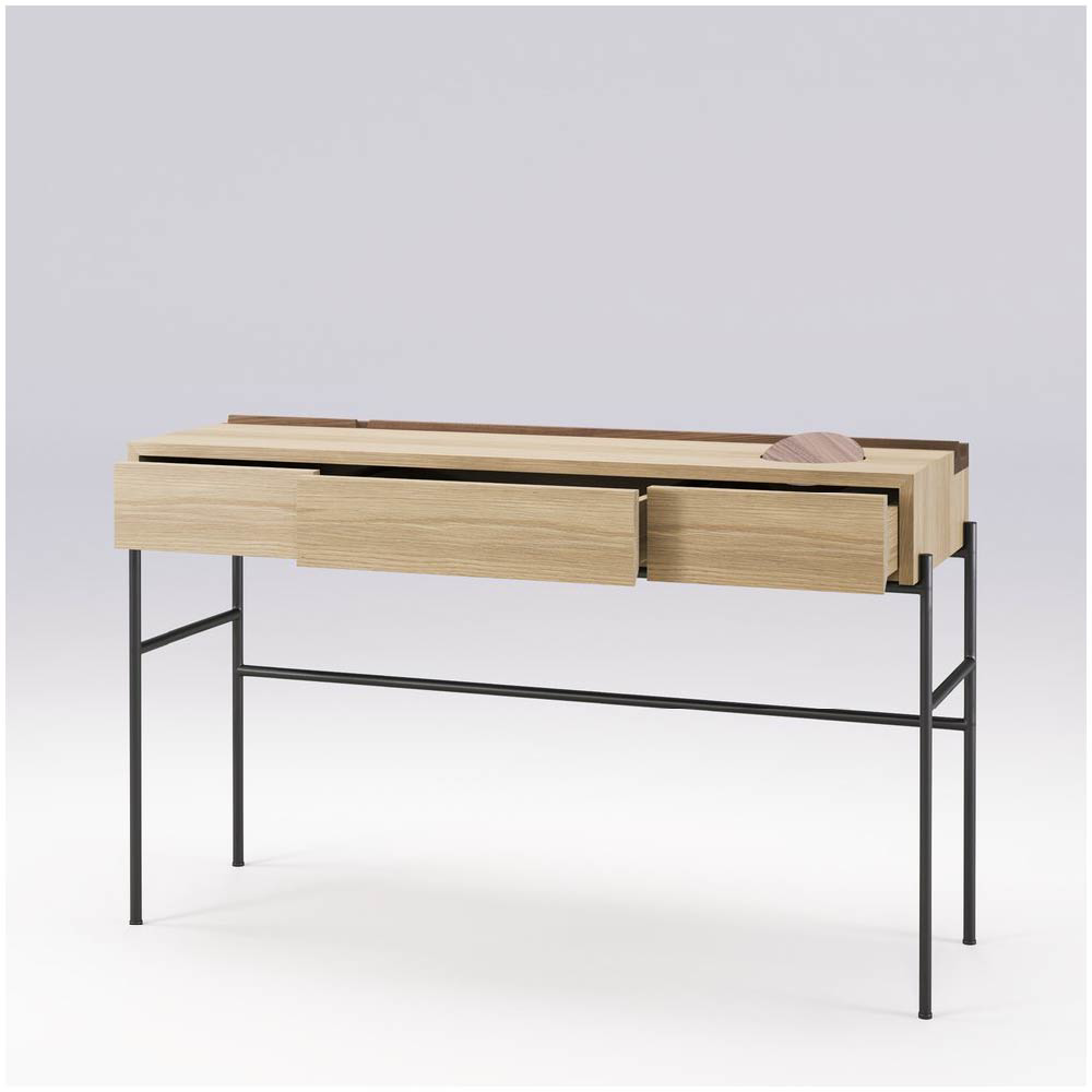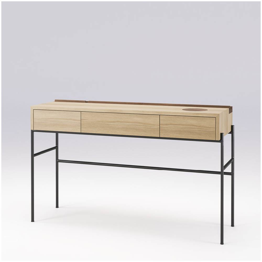Its understated elegance and compact footprint ensure it doesn’t overwhelm smaller spaces, while its sleek surfaces and quality materials, such as the solid walnut strip, elevate the overall aesthetic. The clean lines and thoughtful details make Concierge not just a functional piece of furniture but also a stylish accent that can stand alone or complement other décor elements.