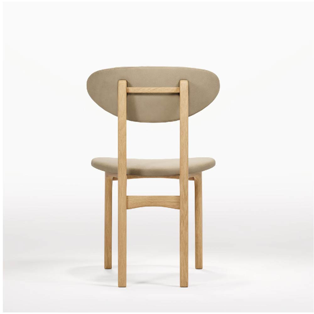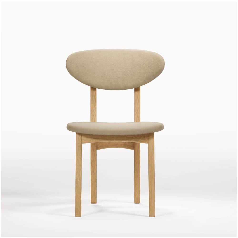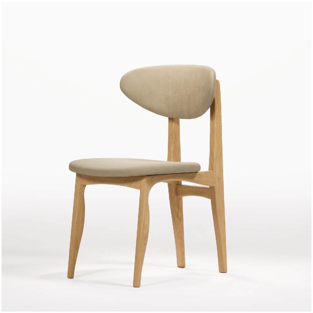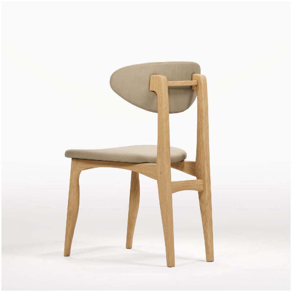 Crafted from solid wood, this chair showcases a harmonious blend of artisanal craftsmanship and refined aesthetics. Intricate detailing on the legs and backrest subtly enhances its sculptural quality, while the upholstery, offered in a curated selection of premium fabrics and supple leathers, adds comfort and tactile richness to the experience.
