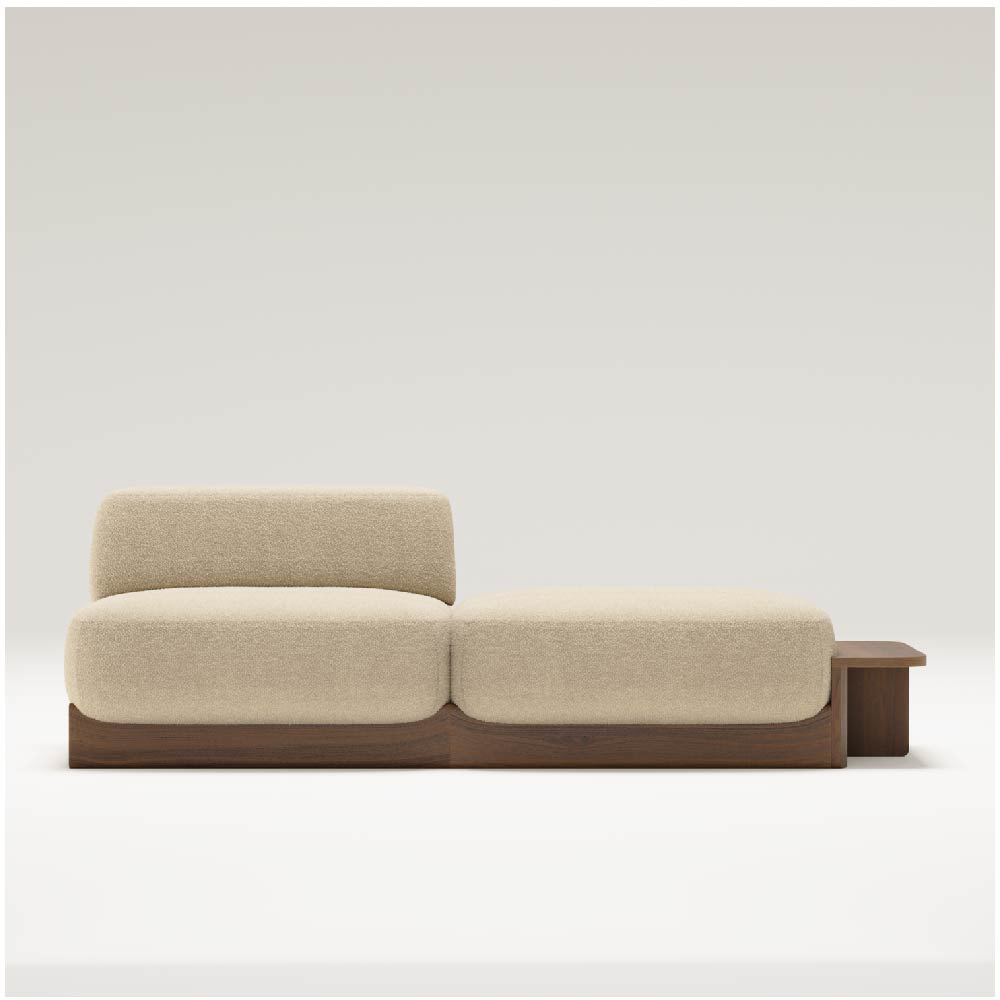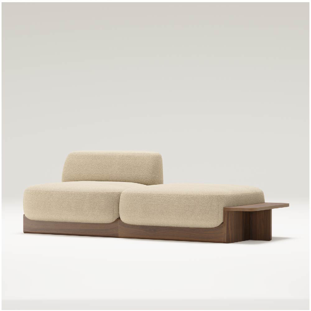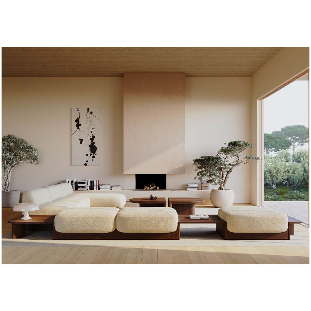 The wooden base is not just a structural foundation but a design language that runs throughout the collection. It serves as both a visual and functional connector, unifying the various modules while offering clean lines and a refined silhouette. This thoughtful use of solid wood brings consistency and elegance to the modular configuration, ensuring that whether the arrangement is compact or expansive, it maintains its visual harmony.
