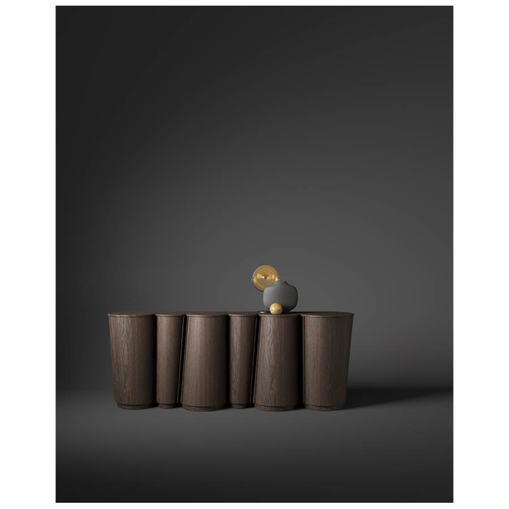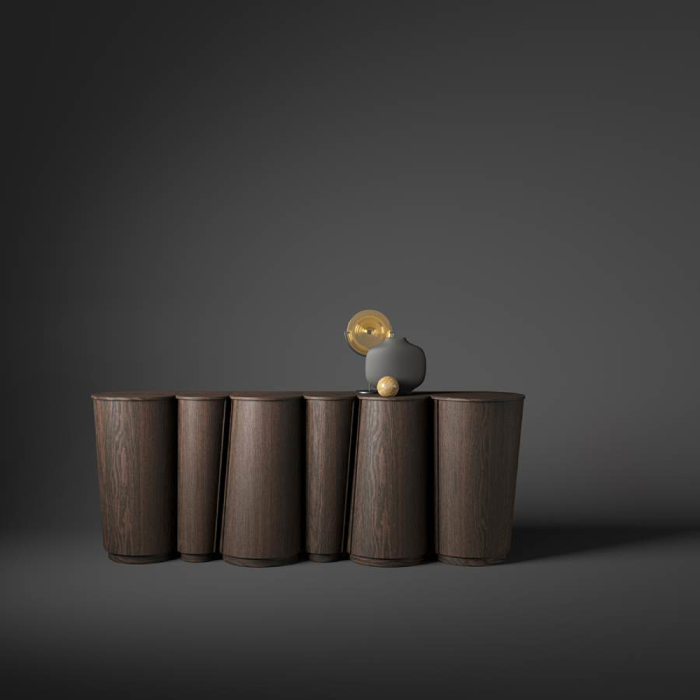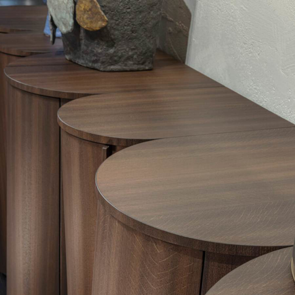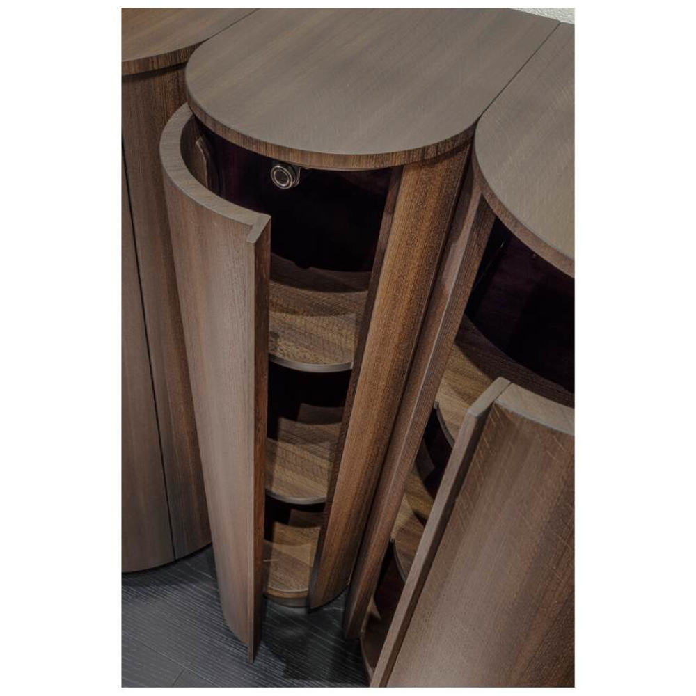 The doors are in fact made of veneered curved plywood and are designed to appear as one with the rest of the structure that makes up the piece of furniture.