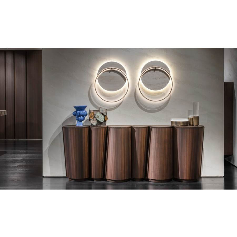 The welcoming and reassuring shape of Druso is one of a kind and hides, in each of its elements, the ability and mastery that derive from a great wisdom linked to high cabinet-making.