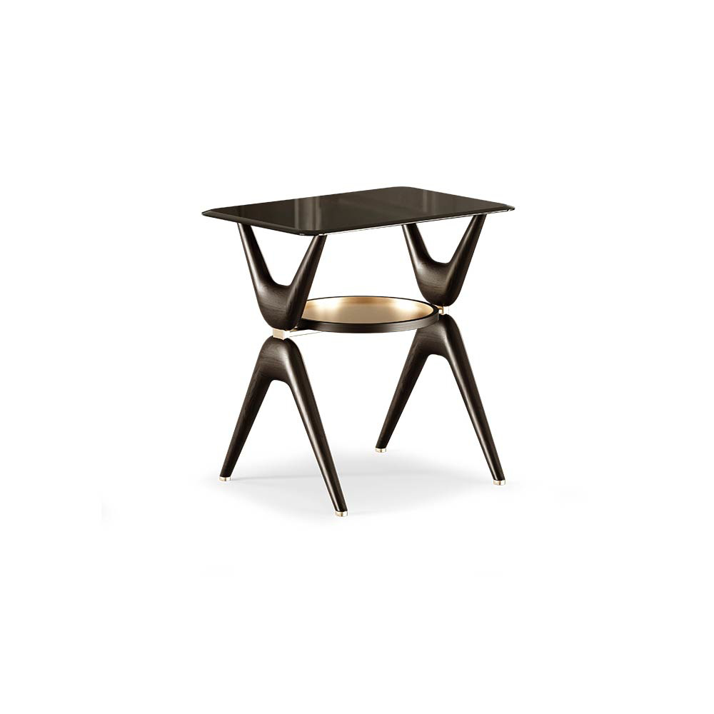 The Elsie side table's most distinctive appeal lies in the base. The four parallel feet with an irregular silhouette hold a circular plate, which is covered with exquisite brass, making the design vibrate.