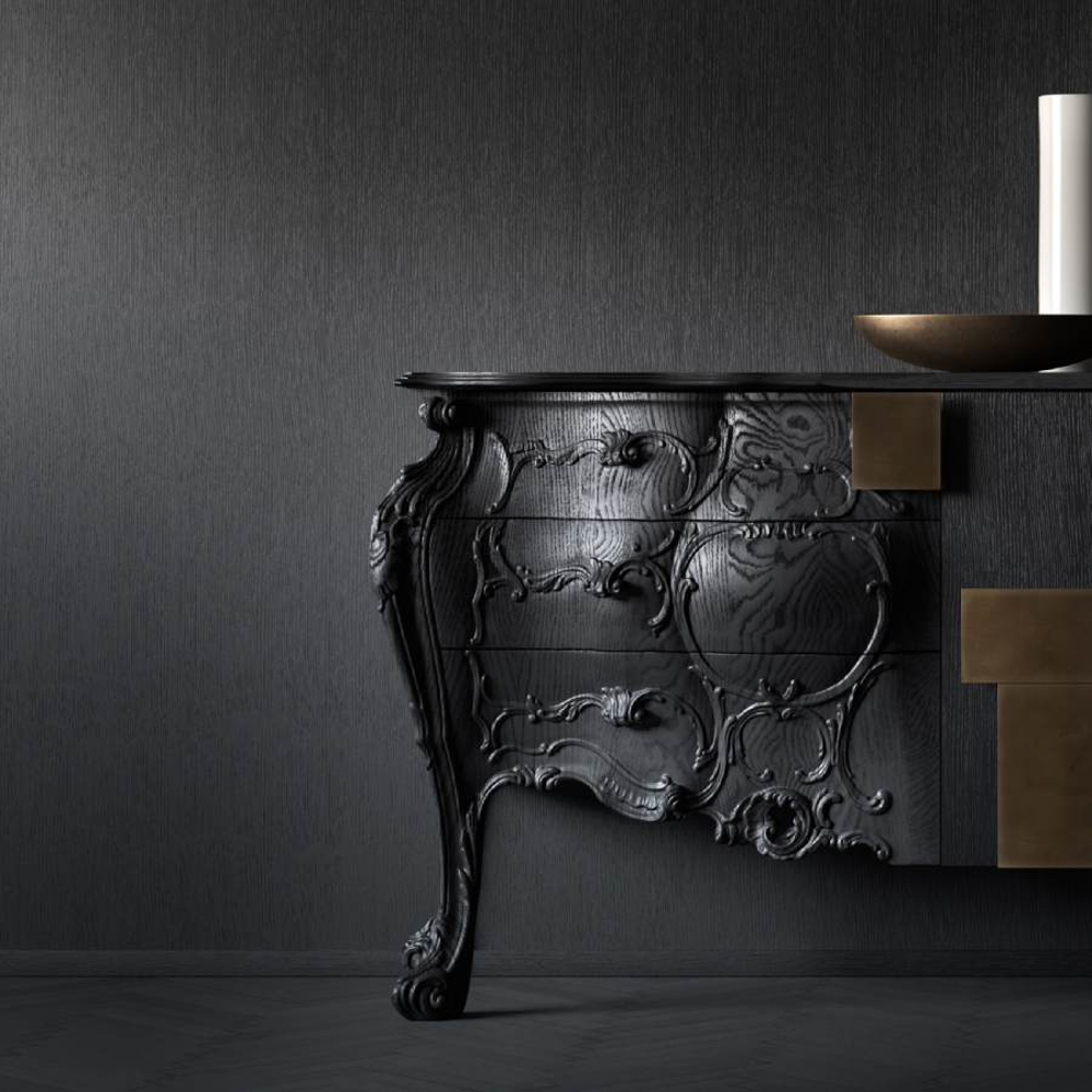 From the large hand-sculpted decorations to represent the high cabinet-making that has made the classic style possible in all its richness, to the formal cleanliness of dry and rigorous volumes of a more rationalist and current current.
