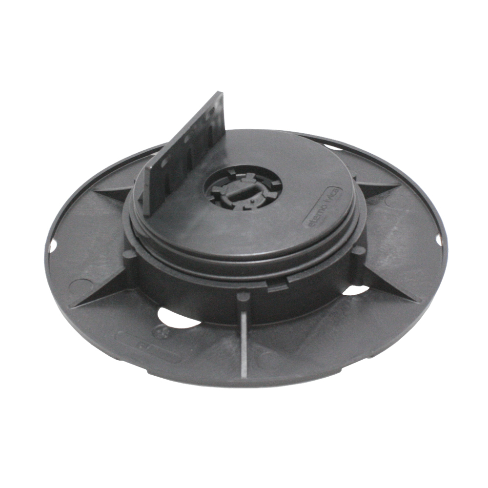 The NM pedestal is regularly selected and widely appreciated internationally within the building industry.  When installed on a sloping surface, shims or the slope compensator can be placed on the pedestal head to ensure a level support surface. The slope compensator can add up to 1% of slope.