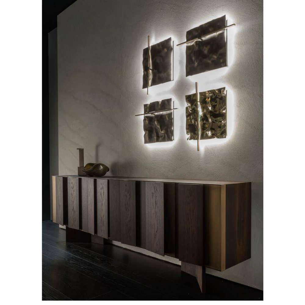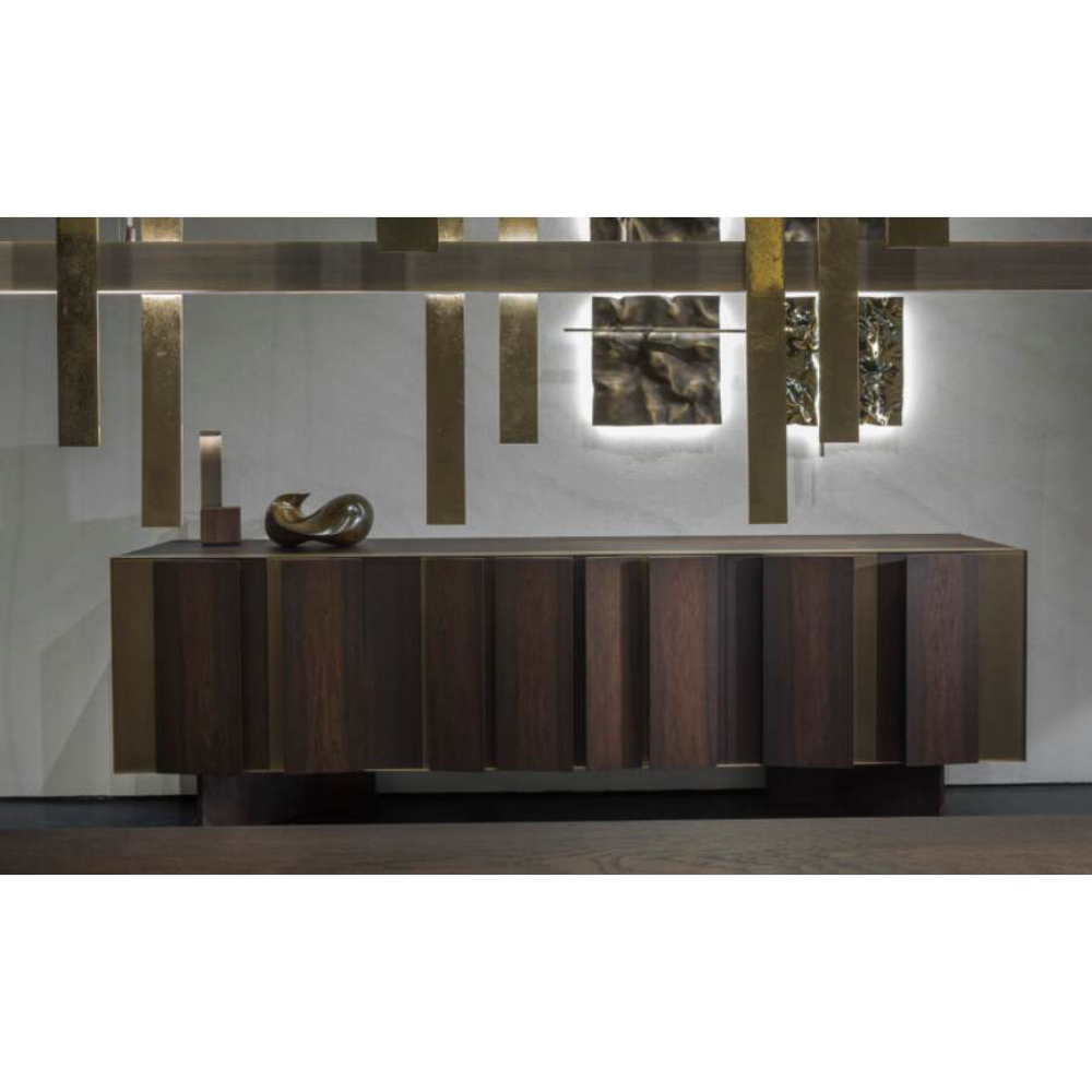 To enrich the FRACTAL furniture family comes Fractal sideboard whose design plays with the juxtaposition of three-dimensional elements with a triangular or trapezoidal section and flat parts that are interposed in order to generate a movement that tends to infinity.