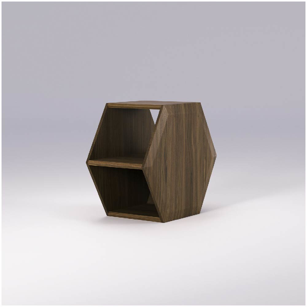 Whether used as a standalone piece or arranged in a combination, Hexa brings a fresh, modern touch to any room. Its geometric shape, paired with the natural beauty of solid wood, creates an inviting, functional design that can be tailored to fit your specific space requirements.