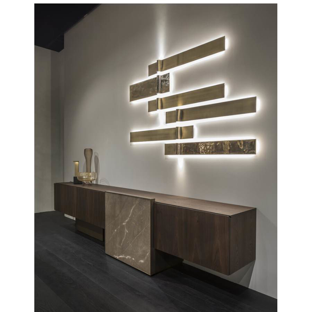 Hic et nunc. Here and now. Time has stopped. The graceful motion that this lamp describes froze in a precise moment, a particular moment in which something happened and stopped its flow, by crystallizing it in a precise moment. All this has made the shape of this object become eternal and immutable.