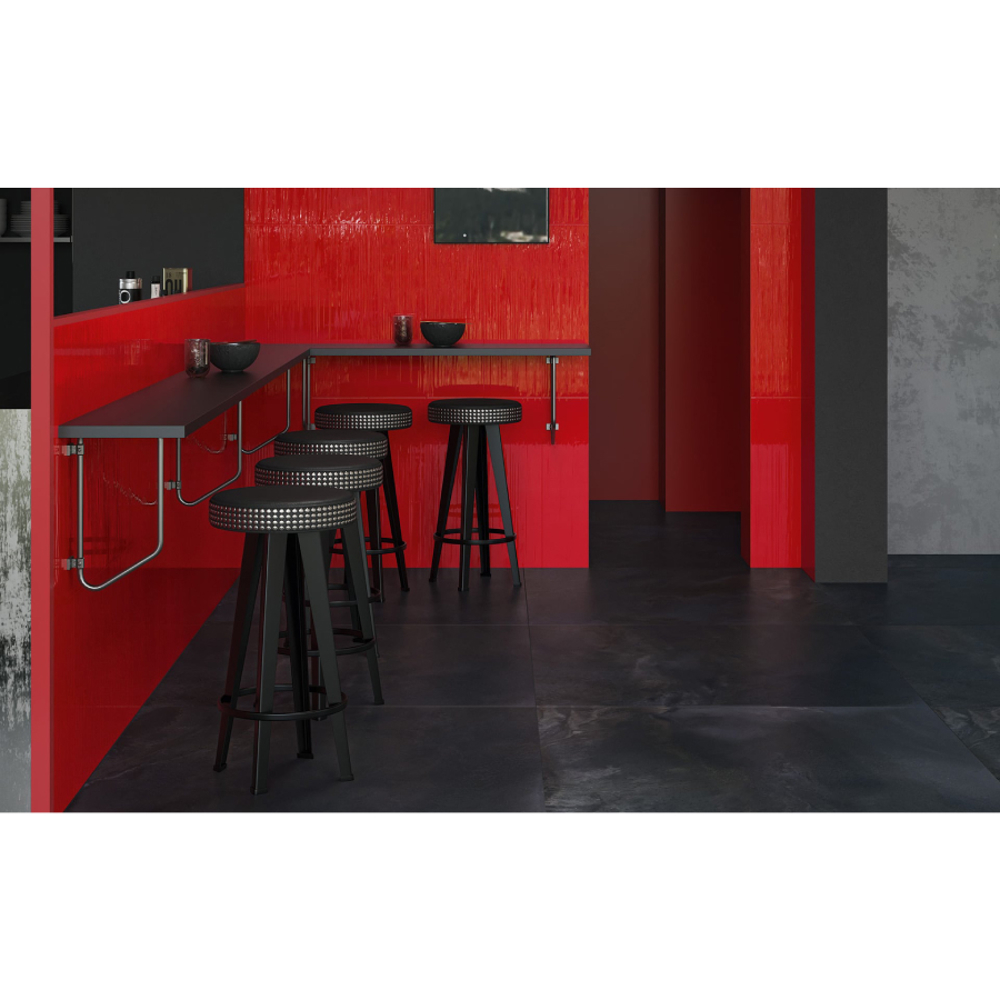 This marble-effect porcelain tile captures the free, evolving nature of matter. A refined granite-like stone texture forms the backdrop, allowing color to emerge with striking intensity through vibrant, multi-colored veining. The result is a surface of exquisite charm, where veins alternate between soft, graceful expressions and bold, powerful gestures.