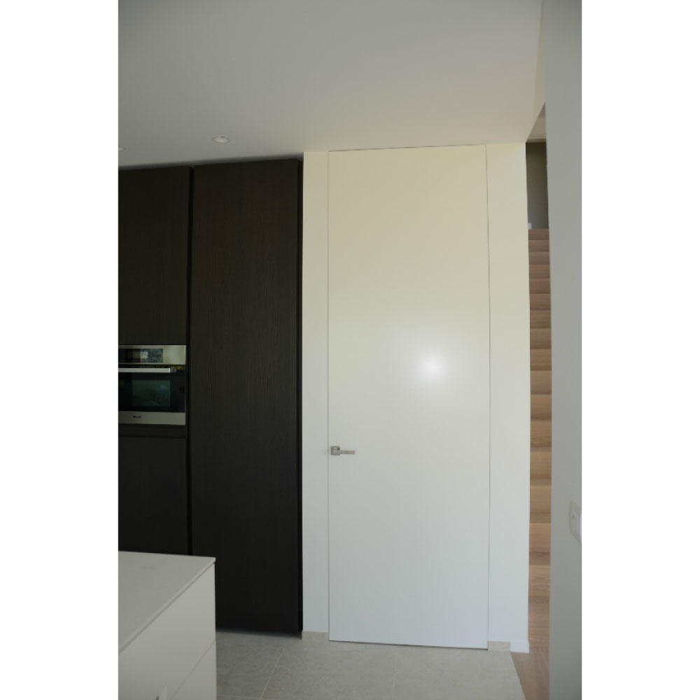 The solid, durable frame ensures quick and hassle-free installation, while hinges color-matched to the frame and finishes in white or black create a refined and cohesive look. When painted to match the wall, the frameless flush door becomes nearly invisible, achieving a discrete, timeless aesthetic that enhances modern, minimalist, and luxury interiors.