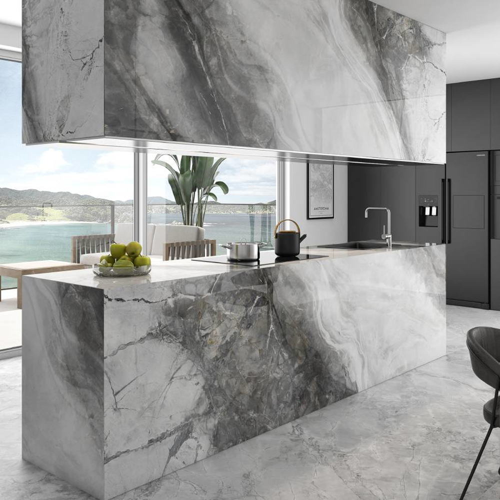 Marblessa Countertops collection is a new sintered mass that provides solutions for kitchen countertop with character and personality. Born as a result of a deep study of decorative trends and the most contemporary demands. Its large dimensions 63"x126", and the extremely high-performance technical features make it an ideal material for the most demanding product applications such as kitchen countertops.