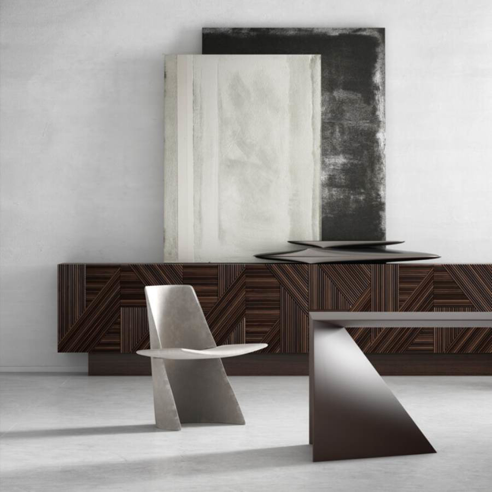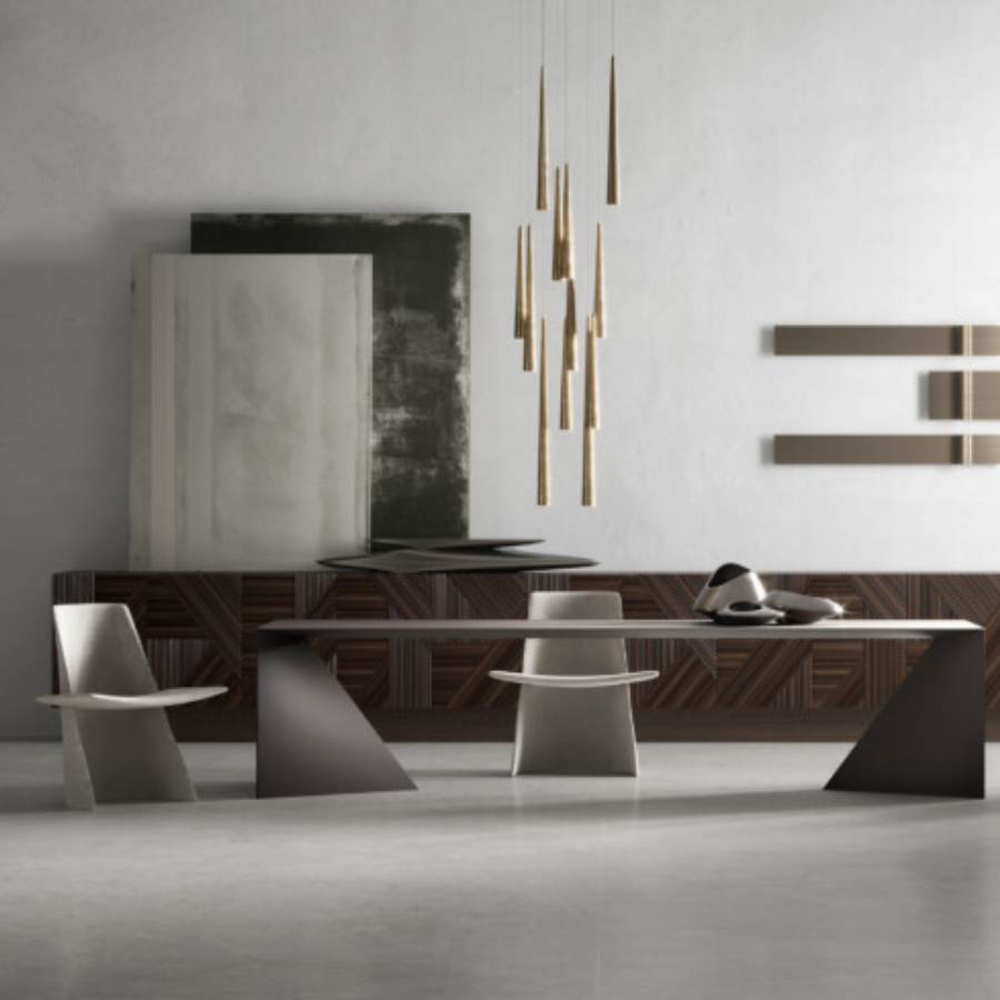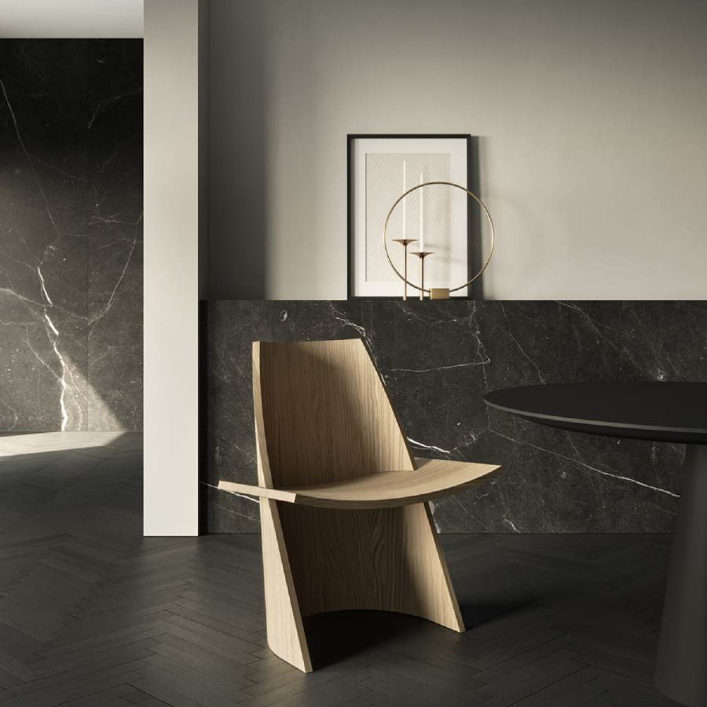 Curves and lines that generate shapes, planes that intersect defining volumes. As for the table, the Iperbole chair is the fusion of Emmemobili's craftsmanship, the technology of curved plywood and the purity of a clear and decisive line.