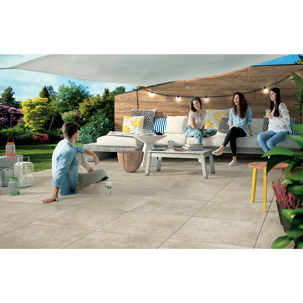 Officine has a technological soul in porcelain stoneware, the most reliable and performing material for commercial and residential buildings. It is available both for Outdoor and Indoor applications in different colors and sizes. Officine outdoor spaces feature a concrete look with all the characteristics of 2cm porcelain stoneware.