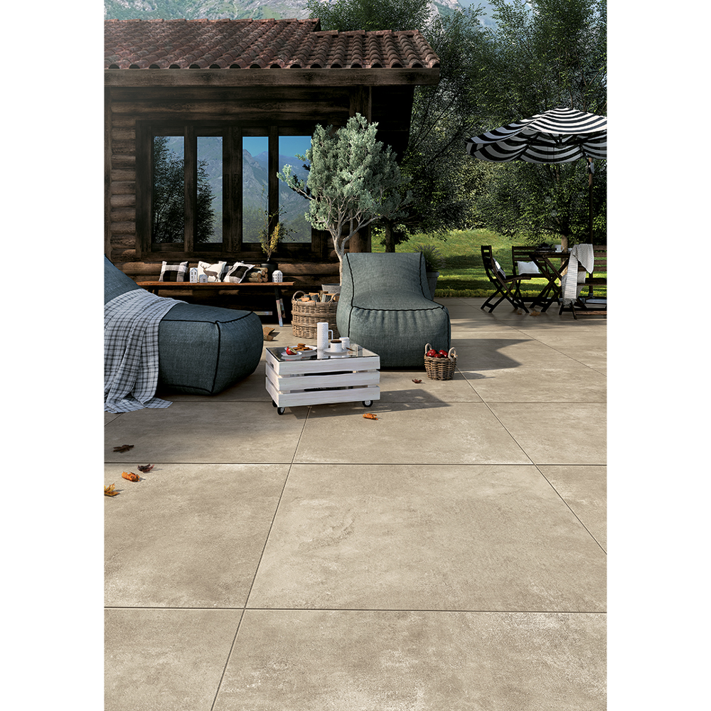 Officine has a technological soul in porcelain stoneware, the most reliable and performing material for commercial and residential buildings. It is available both for Outdoor and Indoor applications in different colors and sizes. Officine outdoor spaces feature a concrete look with all the characteristics of 2cm porcelain stoneware.