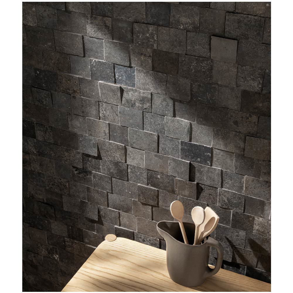 With its blend of natural stone effect, textured surfaces, and high-performance porcelain stoneware, the Reverse series is ideal for creating coordinated design projects with a strong architectural identity.