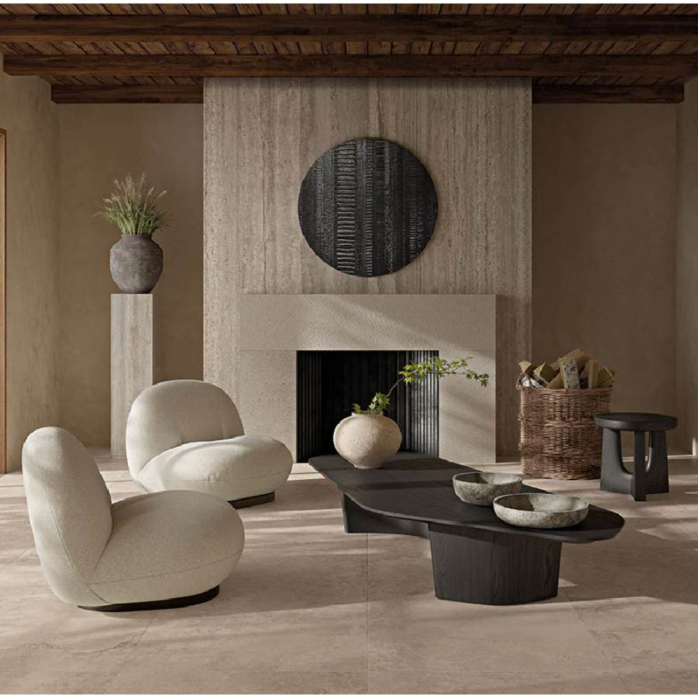 Travertine, with its warm and delicate beauty, lies at the heart of the Nativa collection — a dialogue between the natural universe and the human dimension that gives rise to a timeless material bringing simple elegance to contemporary spaces.