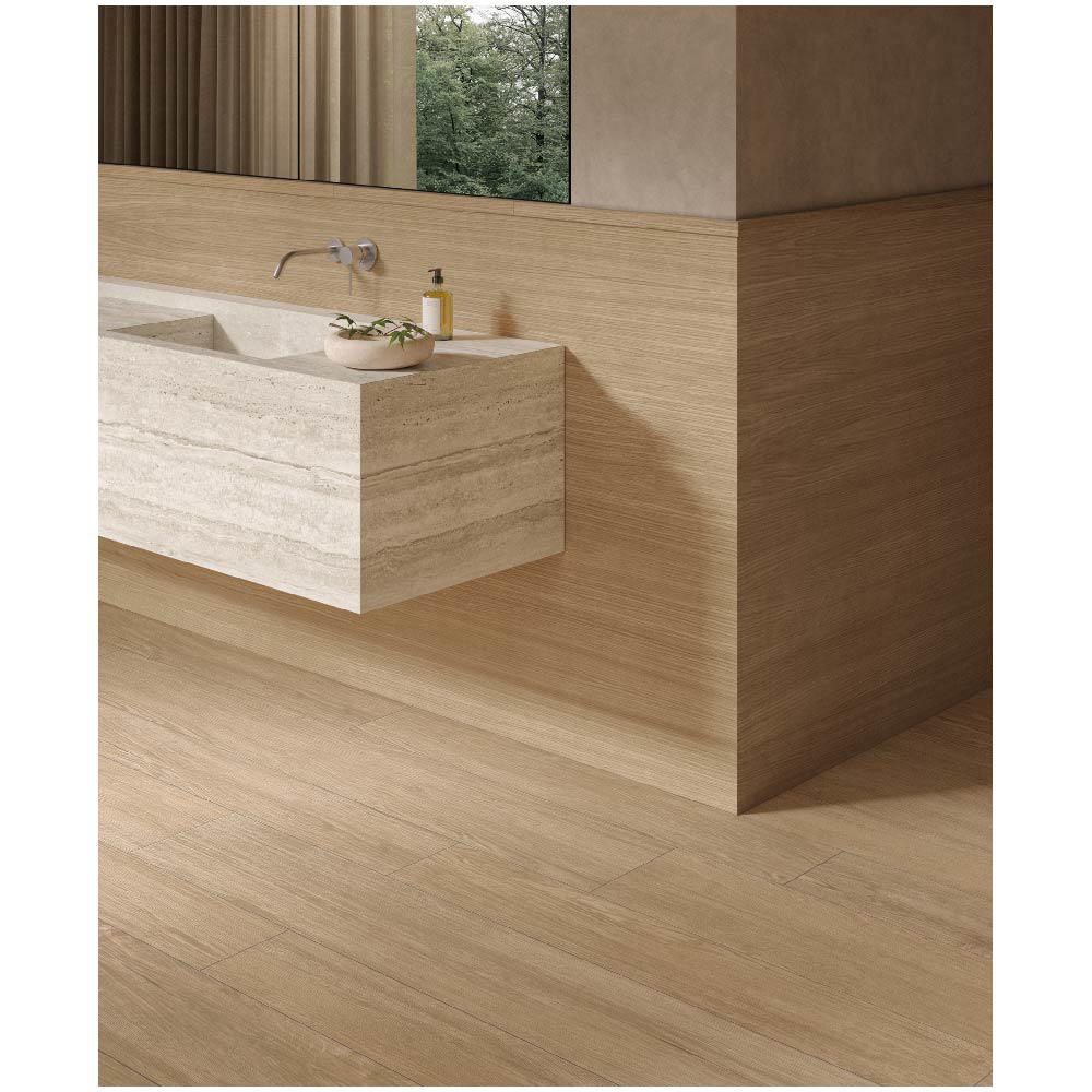 Expressing the timeless beauty of wood with supreme simplicity, Essence transforms rooms into places of pure elegance. Each slab embodies the essence of nature and envelops interiors in a warm embrace of comfort and sophistication.