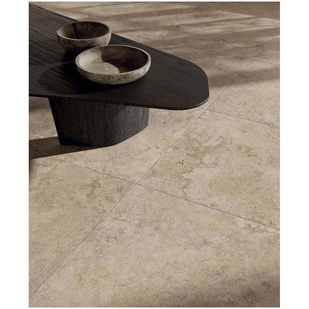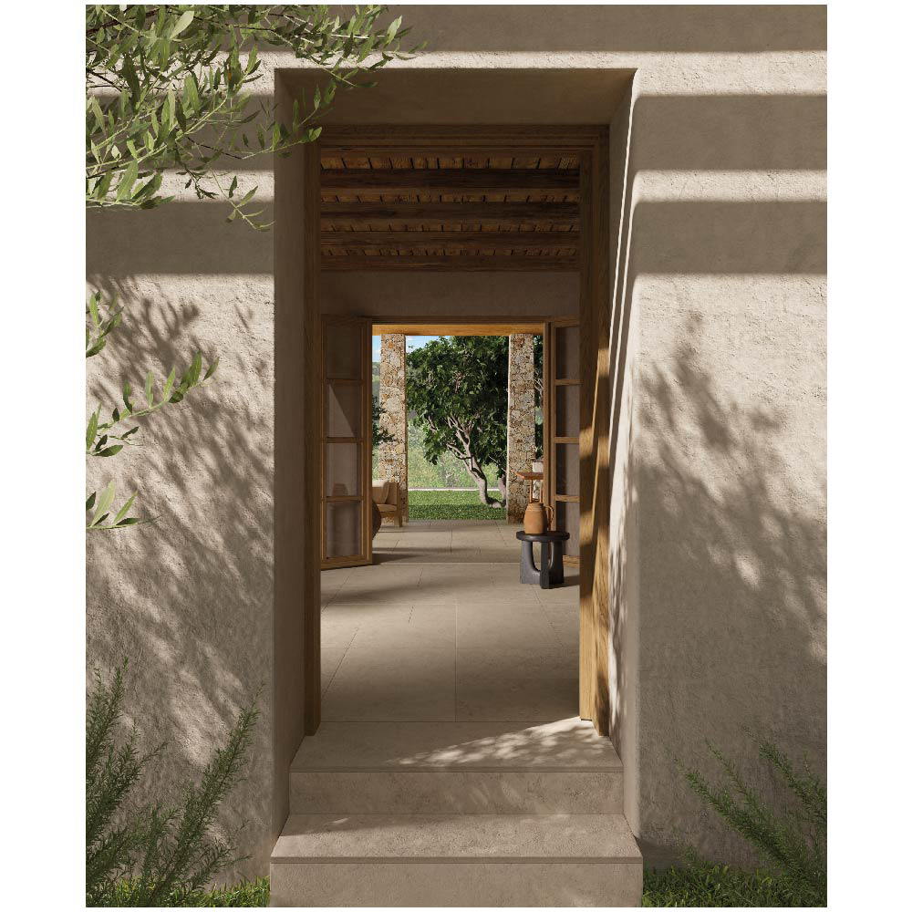 Travertine, with its warm and delicate beauty, lies at the heart of the Nativa collection — a dialogue between the natural universe and the human dimension that gives rise to a timeless material bringing simple elegance to contemporary spaces.