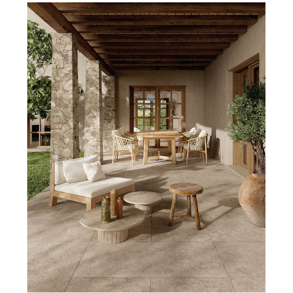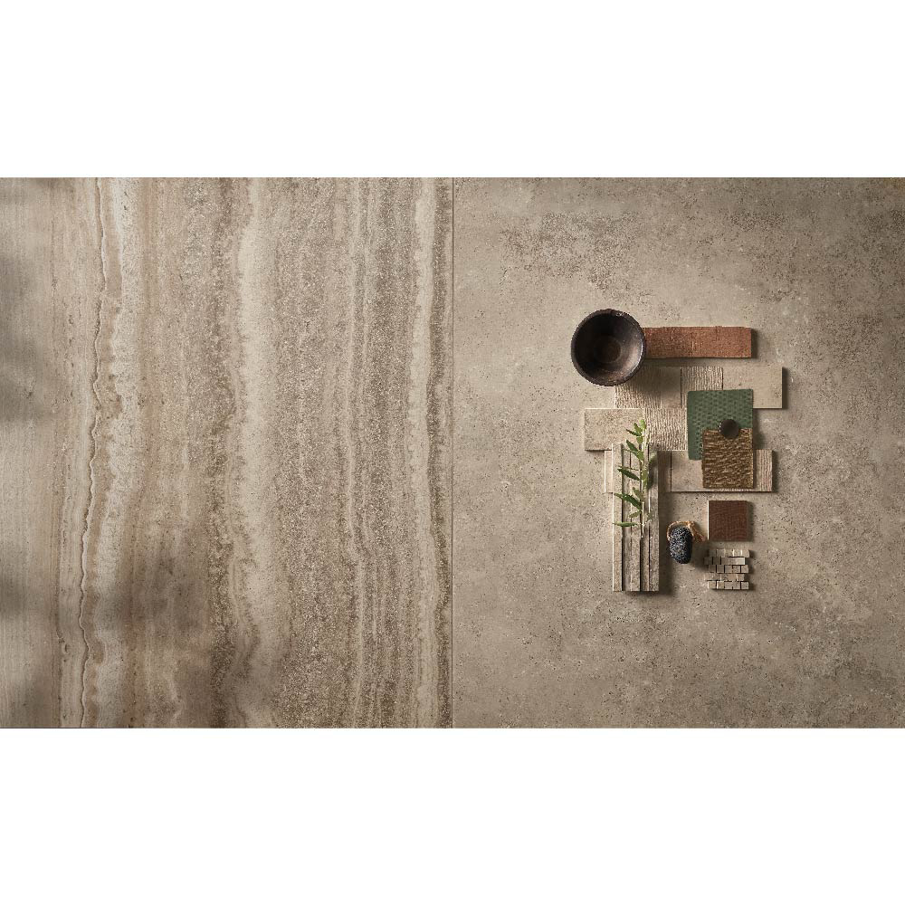Travertine, with its warm and delicate beauty, lies at the heart of the Nativa collection — a dialogue between the natural universe and the human dimension that gives rise to a timeless material bringing simple elegance to contemporary spaces.