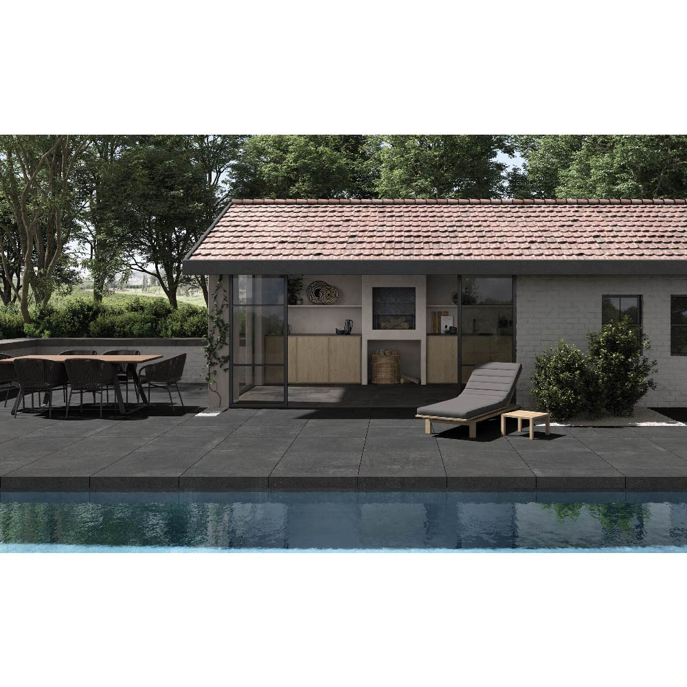 This porcelain tile series highlights the contrast between the ancient, time-worn character of stone and the elegant refinement hidden within its core, offering versatile surfaces suitable for both interior and exterior applications. The Antique surface embodies the stone’s historical charm, showcasing an aged look created by the natural consumption generated by trampling over time. Its textured finish provides anti-slip performance, making it ideal for outdoor floors, pool areas, terraces, and spaces that require safety and durability.