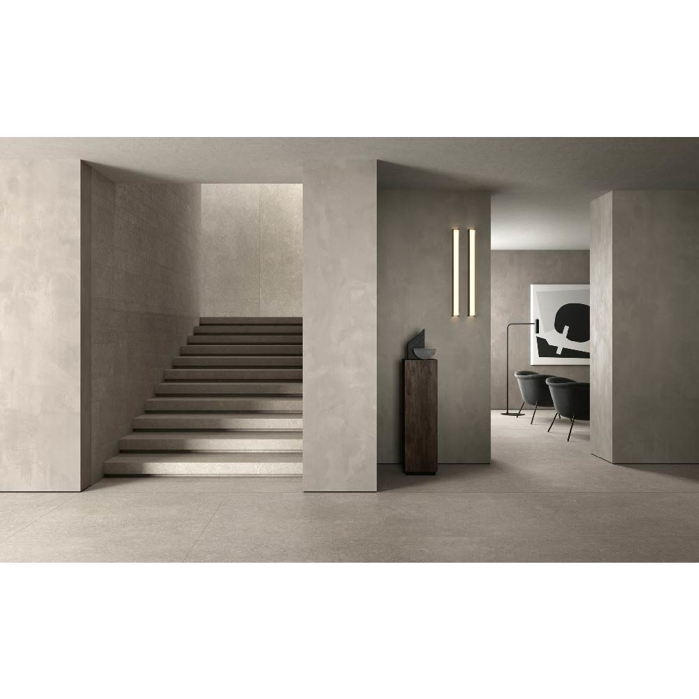 With its blend of natural stone effect, textured surfaces, and high-performance porcelain stoneware, the Reverse series is ideal for creating coordinated design projects with a strong architectural identity.