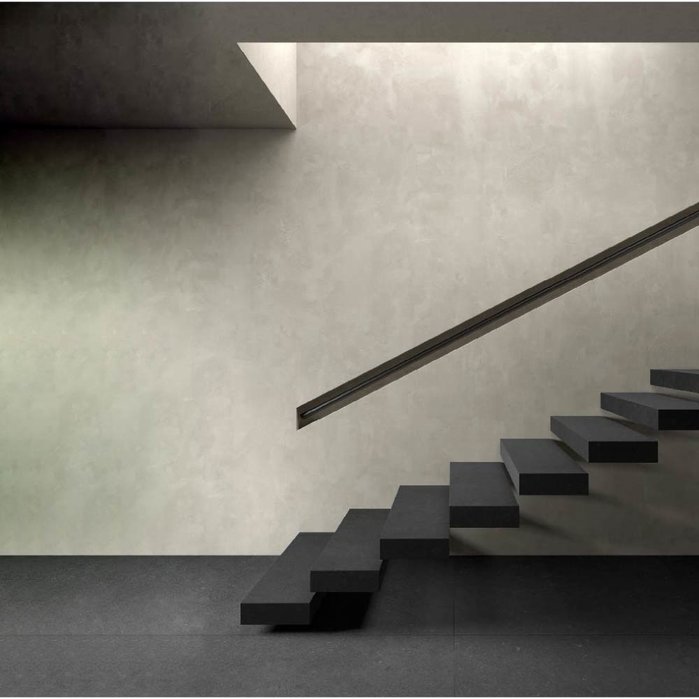 With its blend of natural stone effect, textured surfaces, and high-performance porcelain stoneware, the Reverse series is ideal for creating coordinated design projects with a strong architectural identity.
