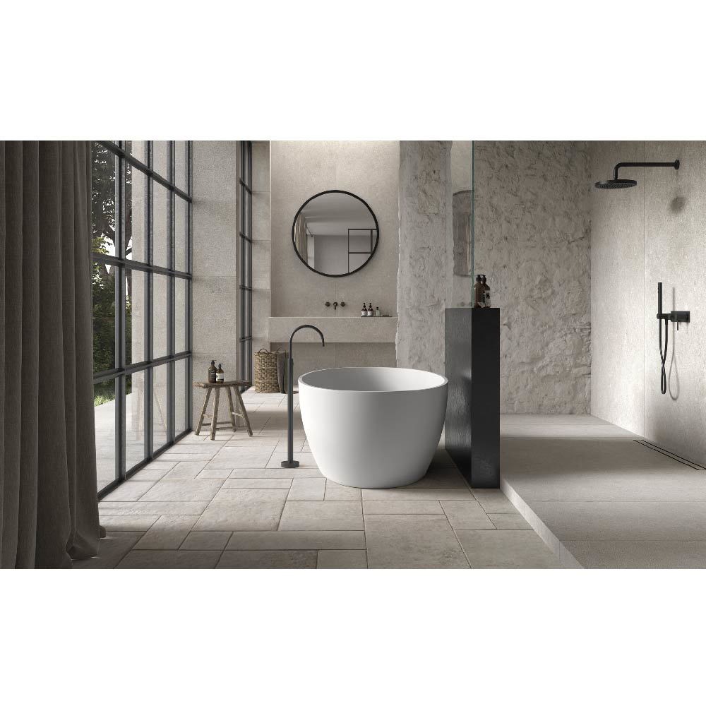 With its blend of natural stone effect, textured surfaces, and high-performance porcelain stoneware, the Reverse series is ideal for creating coordinated design projects with a strong architectural identity.