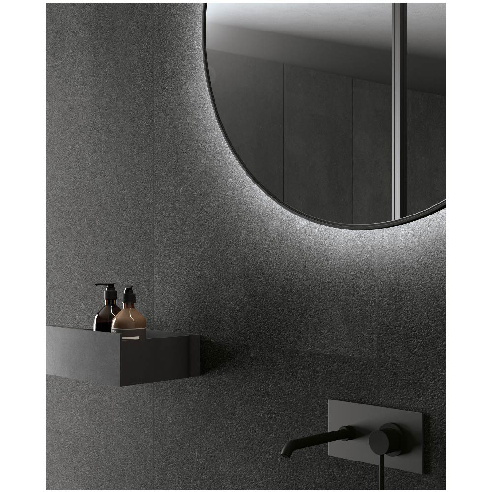 With its blend of natural stone effect, textured surfaces, and high-performance porcelain stoneware, the Reverse series is ideal for creating coordinated design projects with a strong architectural identity.
