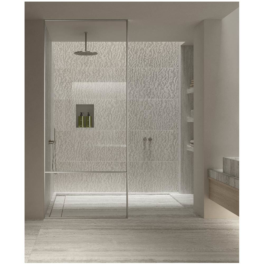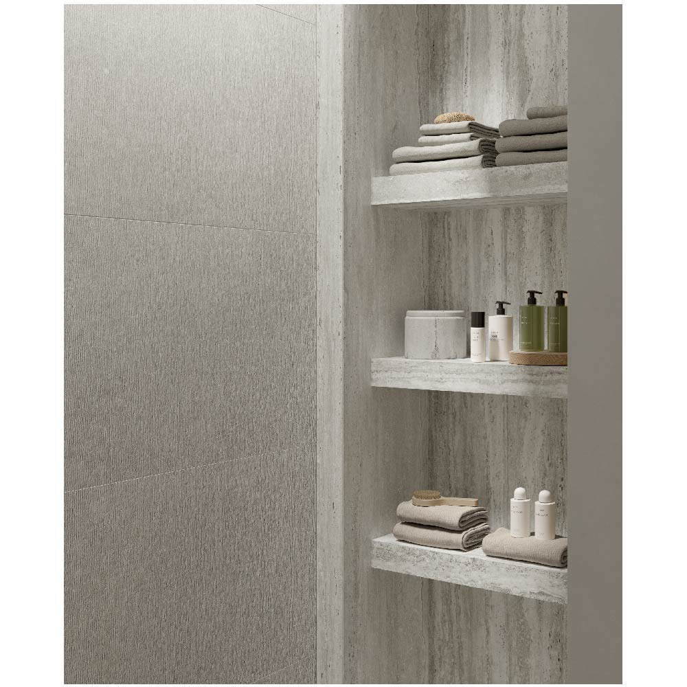 Travertine, with its warm and delicate beauty, lies at the heart of the Nativa collection — a dialogue between the natural universe and the human dimension that gives rise to a timeless material bringing simple elegance to contemporary spaces.