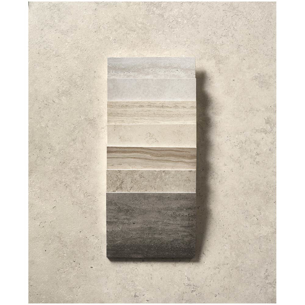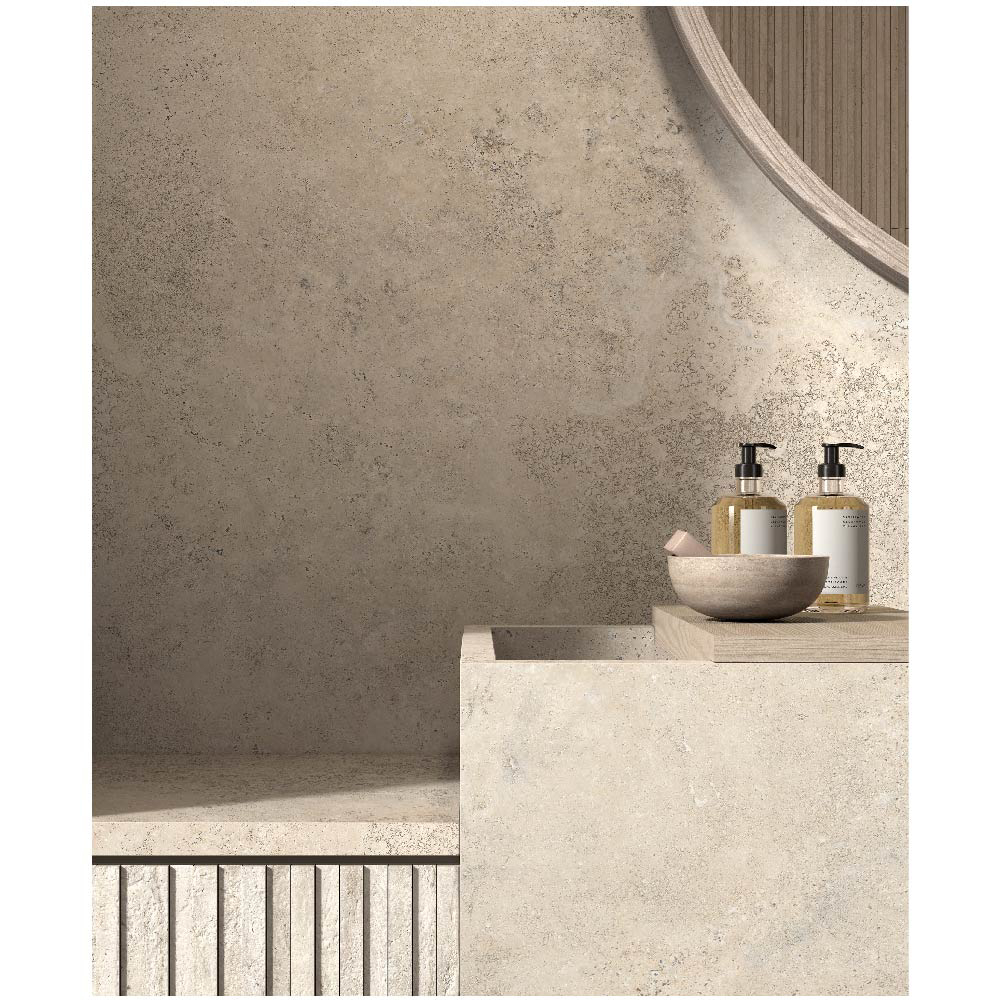 Travertine, with its warm and delicate beauty, lies at the heart of the Nativa collection — a dialogue between the natural universe and the human dimension that gives rise to a timeless material bringing simple elegance to contemporary spaces.