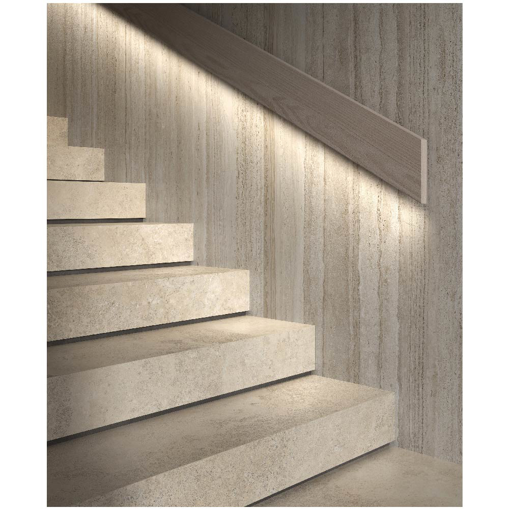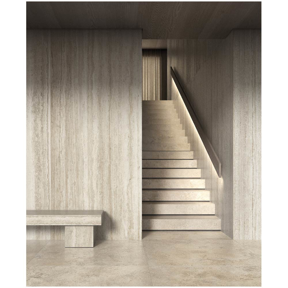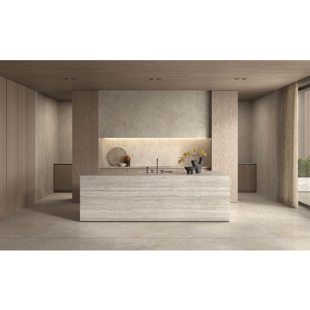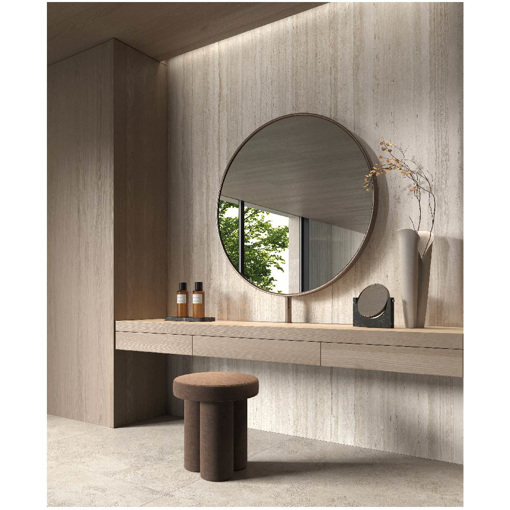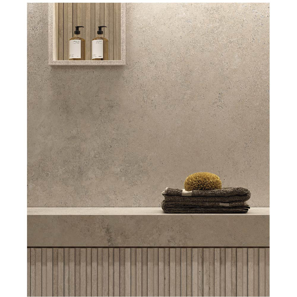 Travertine, with its warm and delicate beauty, lies at the heart of the Nativa collection — a dialogue between the natural universe and the human dimension that gives rise to a timeless material bringing simple elegance to contemporary spaces.