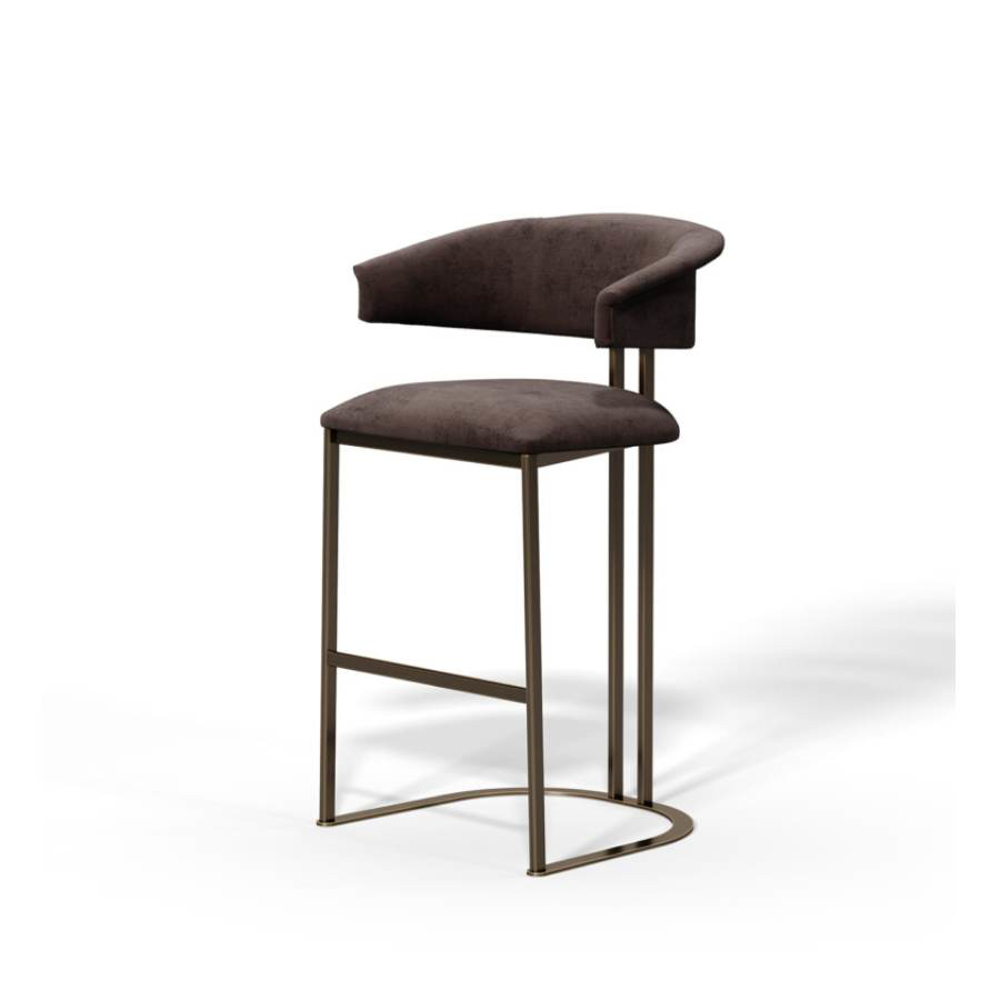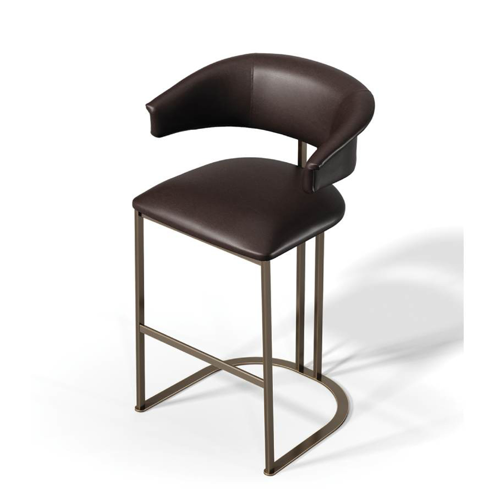 The Kyo stool reinterprets the stylistic features of the Kyo chair, to expand its possibilities of use. Curved and enveloping shapes accompany a structure with metal elements with a brushed antiqued bronzed effect.