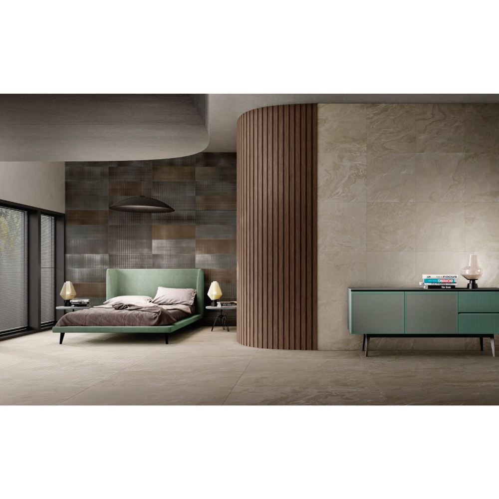 Designed for maximum creative freedom, the collection is available in versatile formats—24” × 48”, 24” × 24”, and 12” x 24”—suitable for both floor and wall applications, alongside decorative mosaic and strip options. Offered in natural and anti-slip finishes, Liquid Stone porcelain tiles perform flawlessly in residential interiors as well as high-traffic commercial spaces. Hypnotic and expressive, this collection immortalizes the moment when liquid stone becomes eternal.