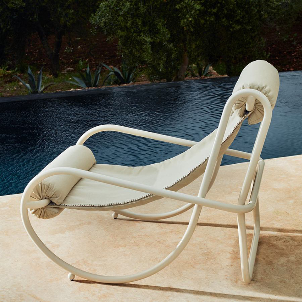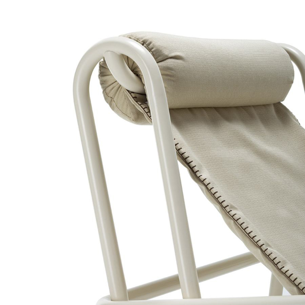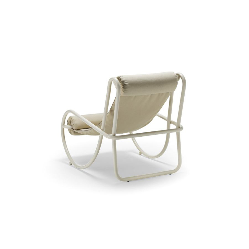The padded tubular elements seamlessly integrate with the curved lines of the metal structure, shaping the seat without interruptions. It is a bold and unmistakable design that provides comfort without weighing it down.