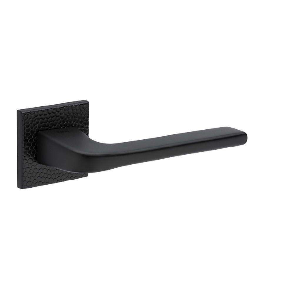 Lever set, Metallic mechanism with “click” system, Reversible recovery spring, 0.3"x3.5" square spindle, Handle fixed by a M6 grub screw