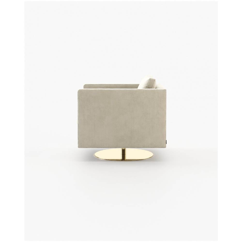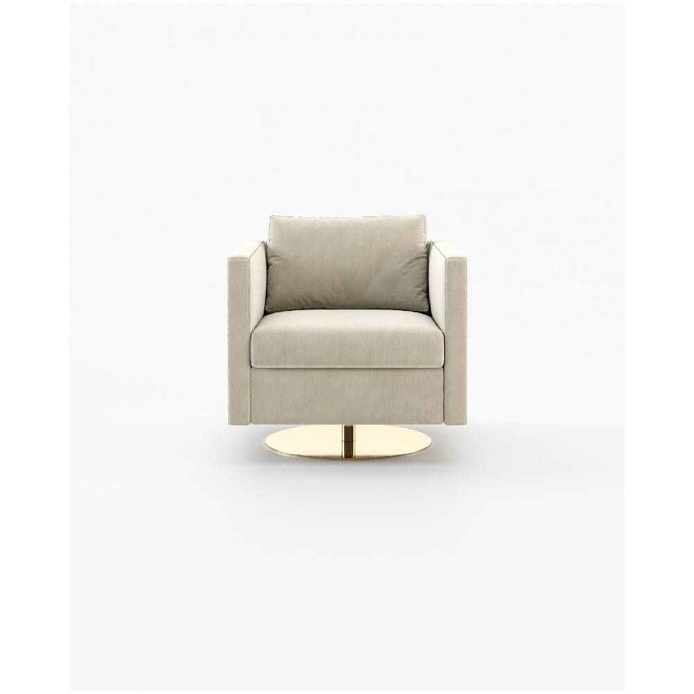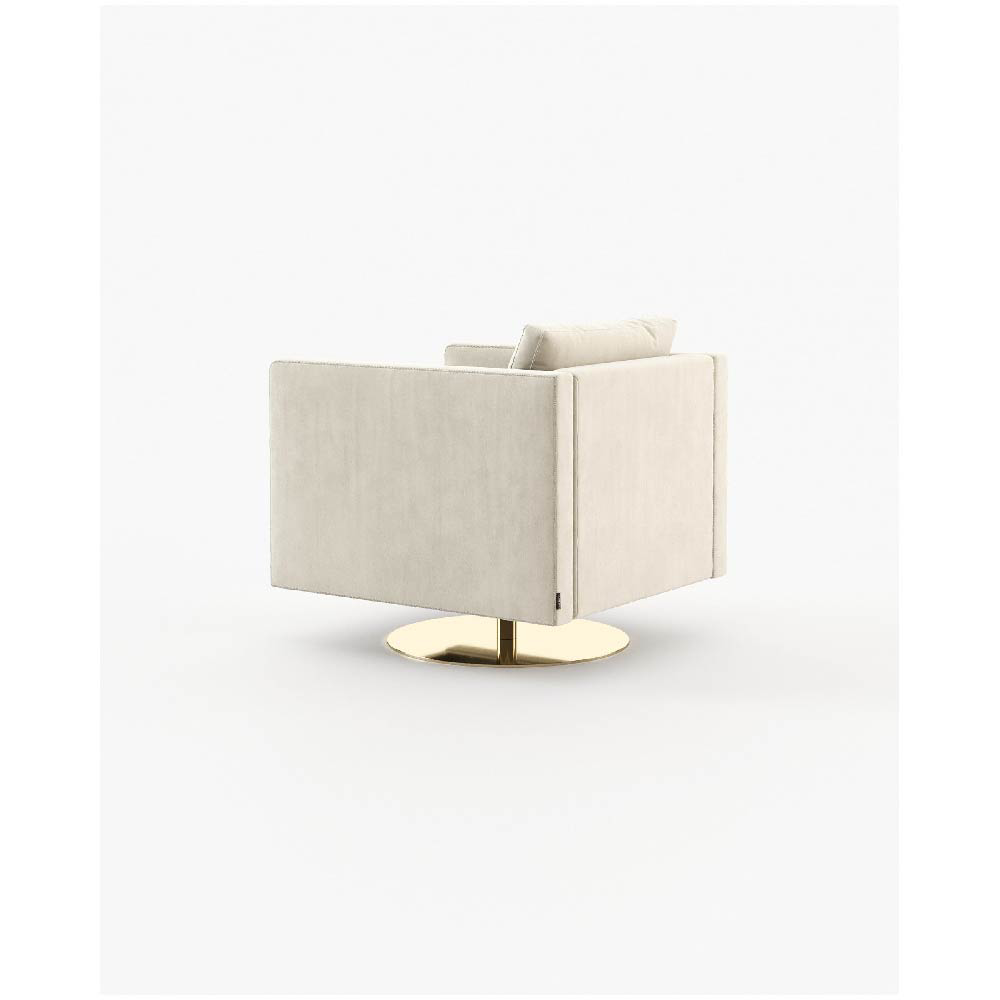 Marlow is an inviting armchair that appears to float above a slim metal base. It adds elegance to any room and is great for spinning around in.