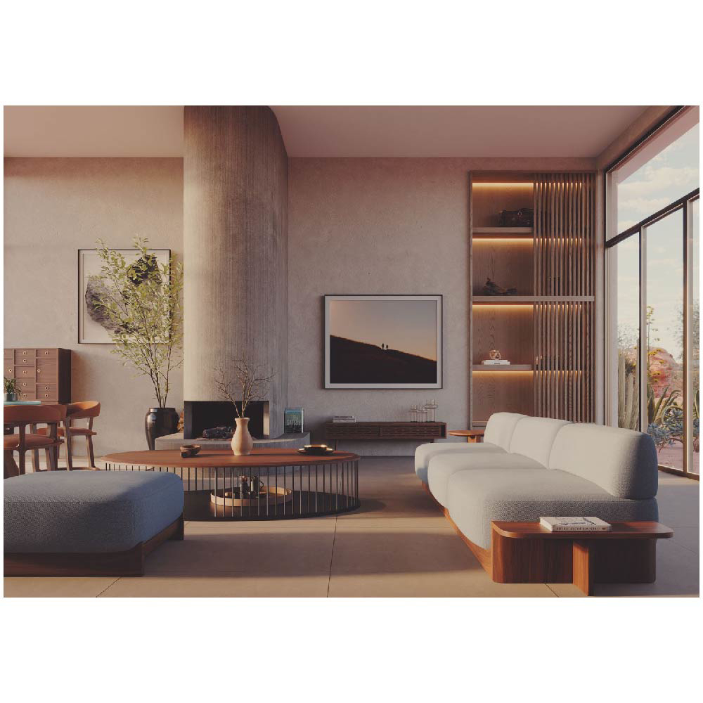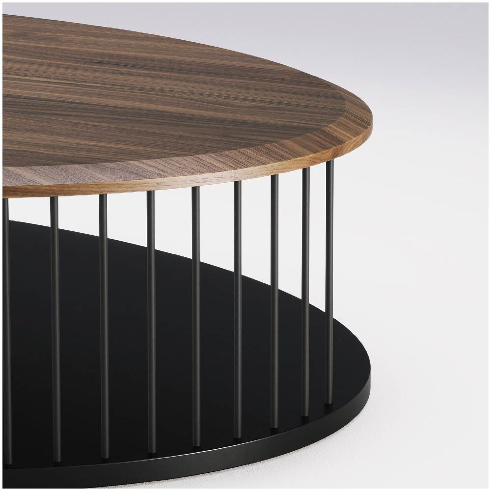 This coffee table serves as a functional work of art, blending mid-century design influences with a modern twist to create an eclectic feel that fits into a variety of interiors.