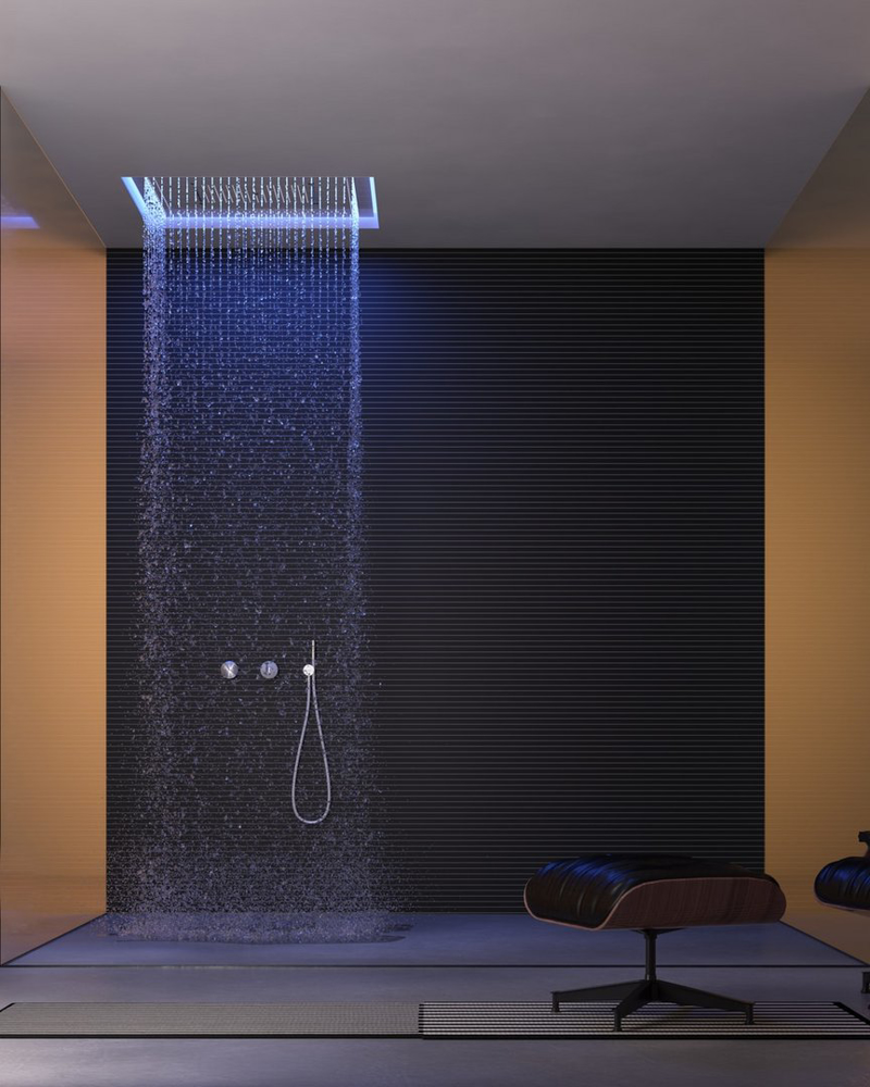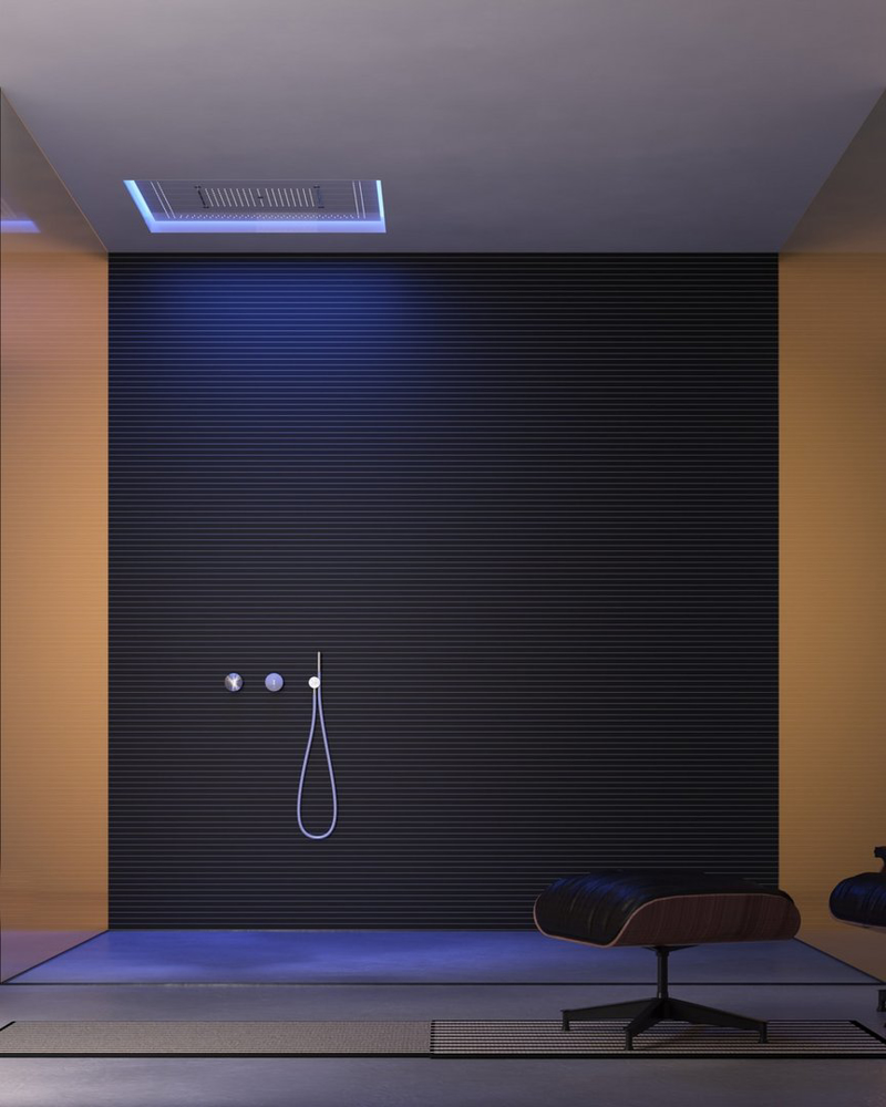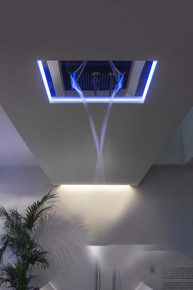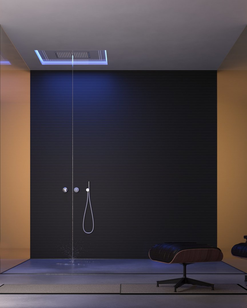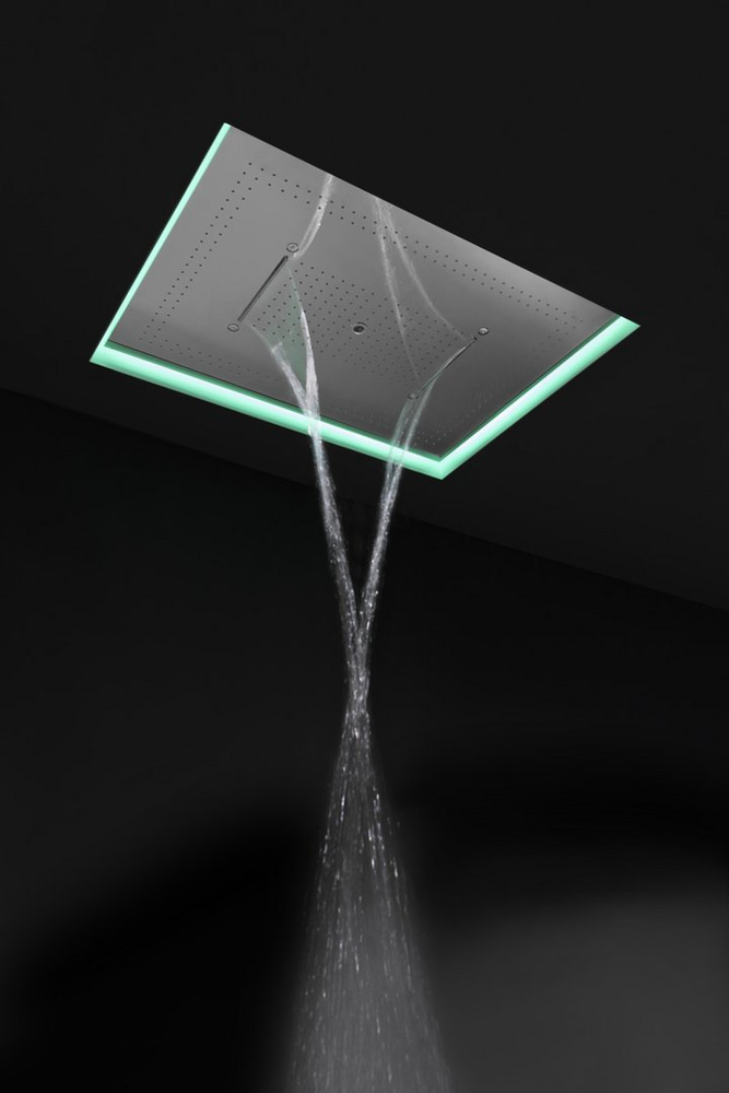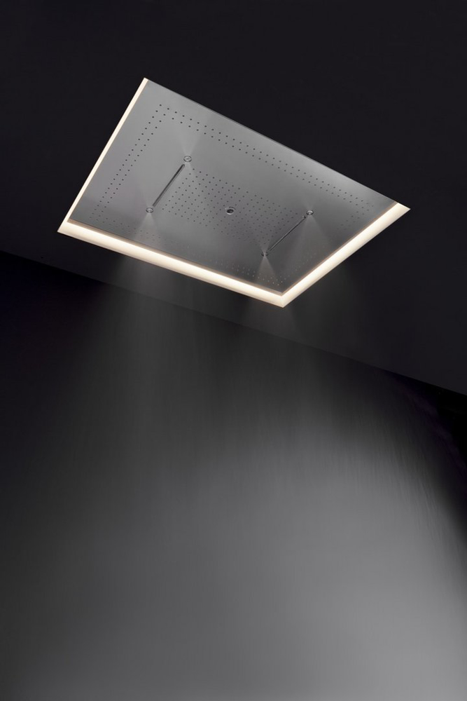 A shower of water and light, a clever mix of sensations and jets, a regenerating force that comes to life from a completely recessed source in the ceiling now available in the extra large version. The family grows, dimensions are larger to give life to a continuous shower as if we were under a cloud. Meteo XXL is born from Meteo (the first introduced in 2011 completely integrated in the ceiling) as a natural evolution to meet the demands of total relaxation that involves all the senses. Meteo is a project characterized by extreme rigor associated with formal minimalism and high technological innovation together to convey unique and sensational emotions.